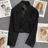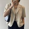 Blazer Amarelo para Mulheres Baixas 2025 Primavera & Outono Curto Retrô Estilo Coreano Casual Slim Exportação Terno para Mulheres
