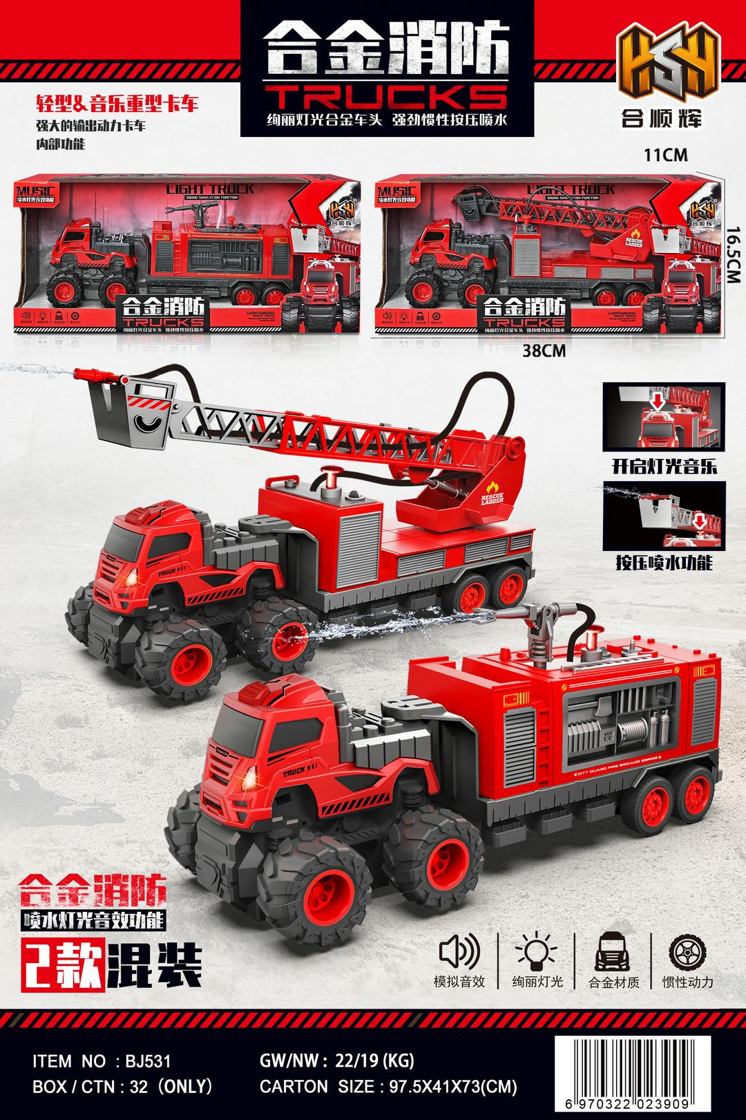 Liga de spray de água música inércia caminhão de bombeiros 531 meninos escada modelo de carro pais-filhos interação brinquedos infantis atacado