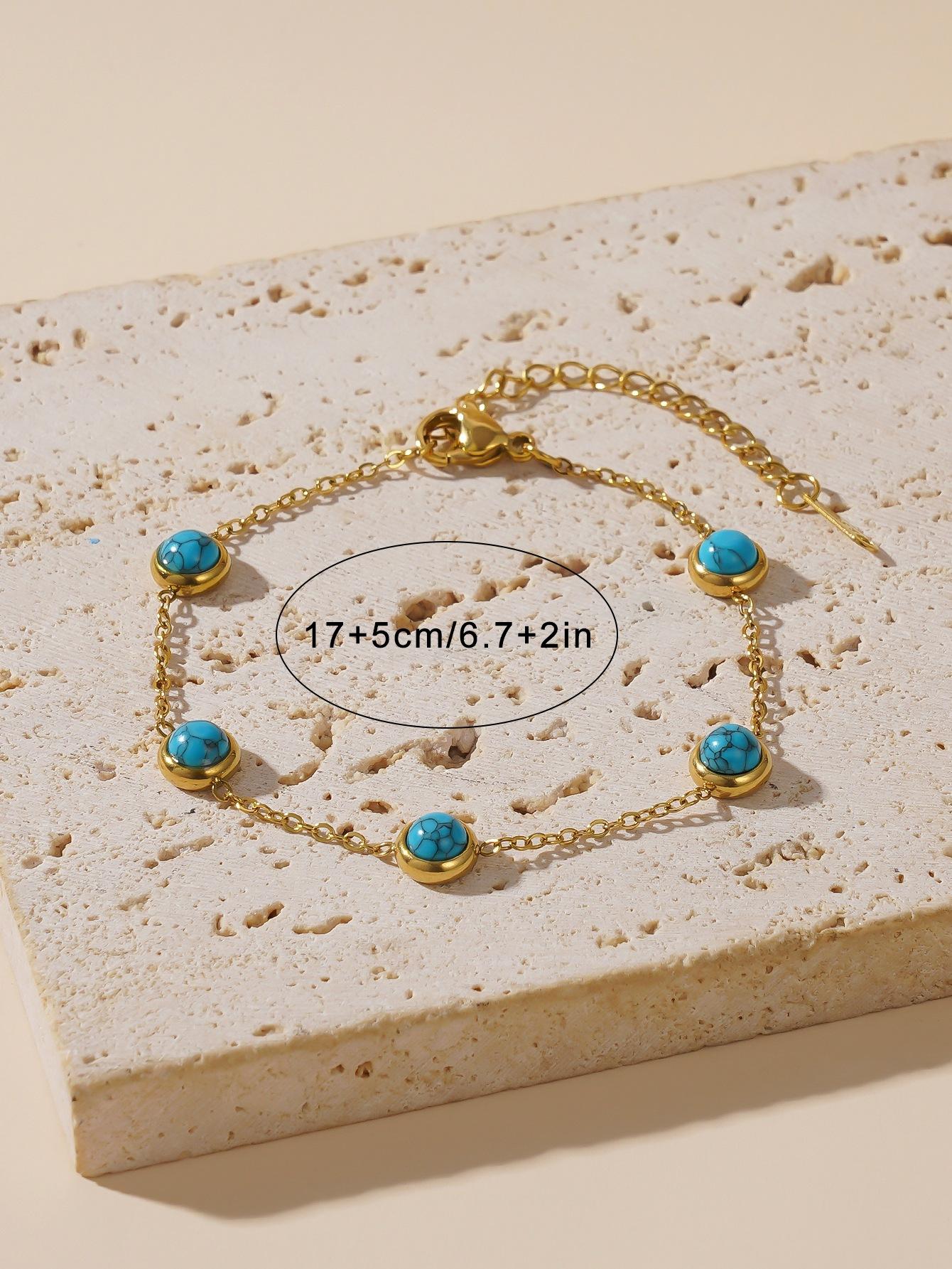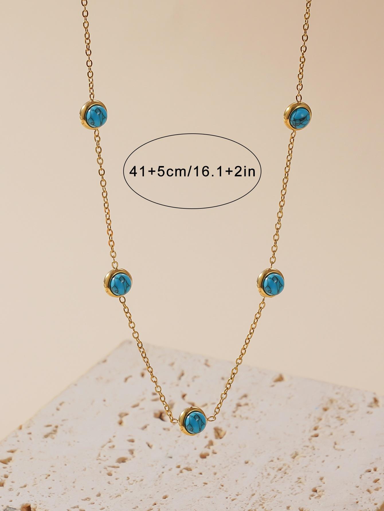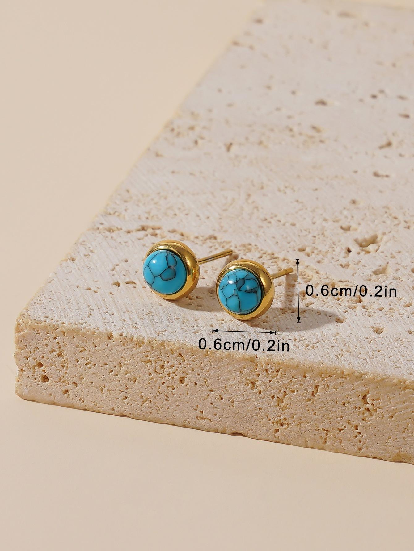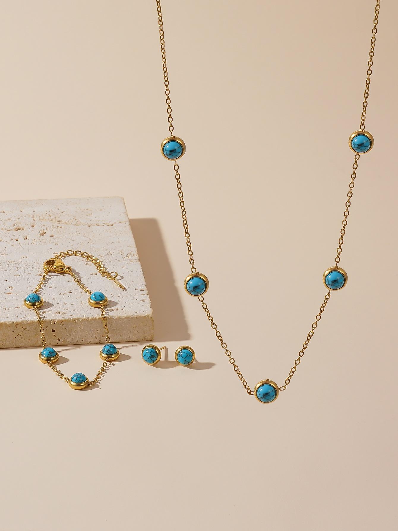 IELTS jóias pequeno verão fresco all-match azul turquesa clavícula cadeia brincos redondos terno jóias pulseira de aço de titânio mulheres