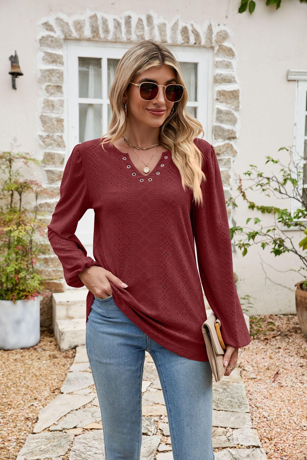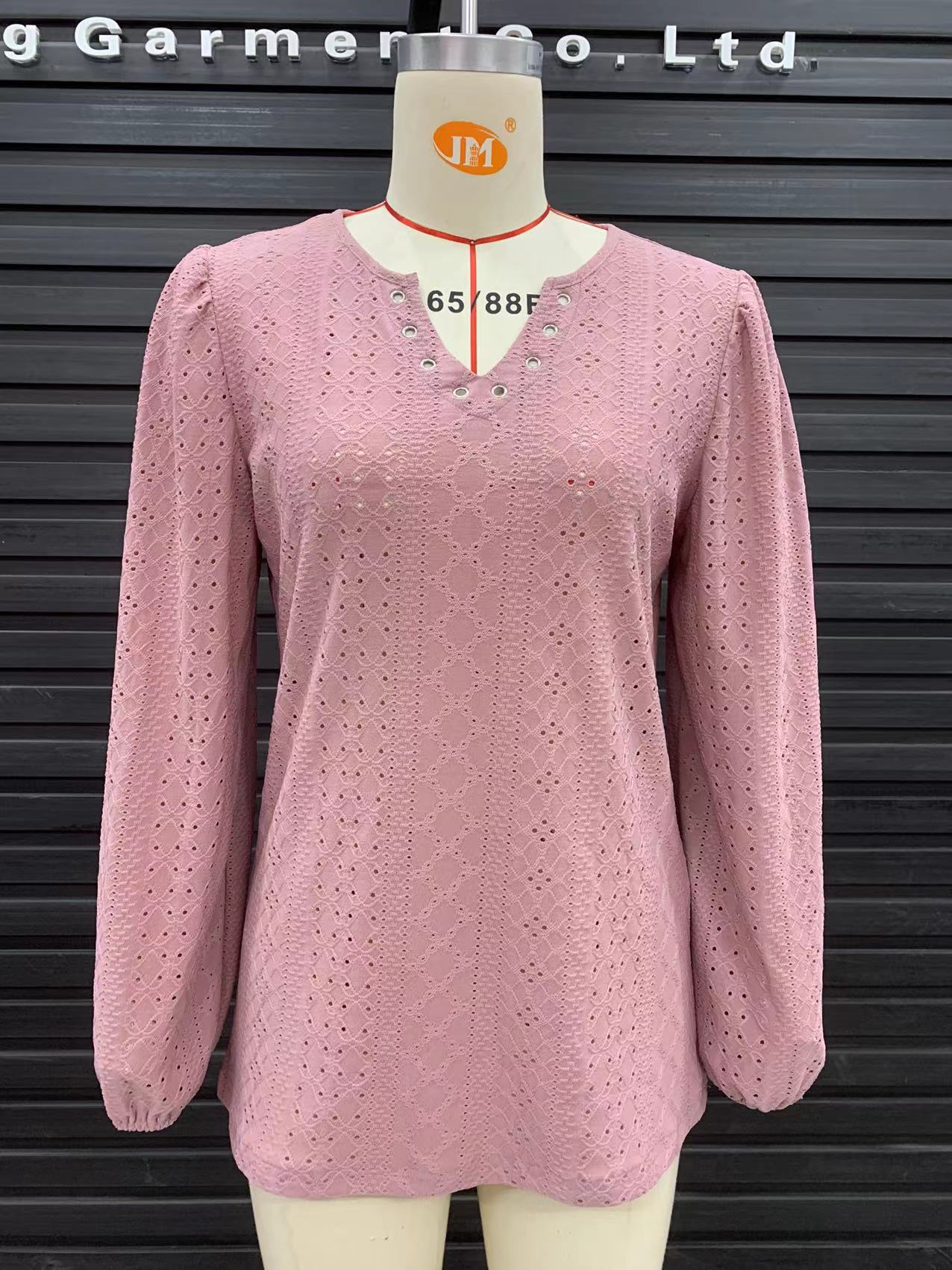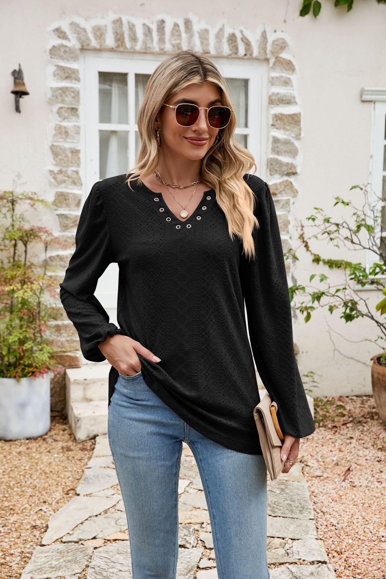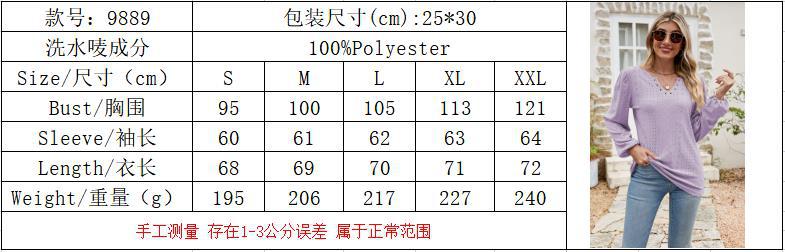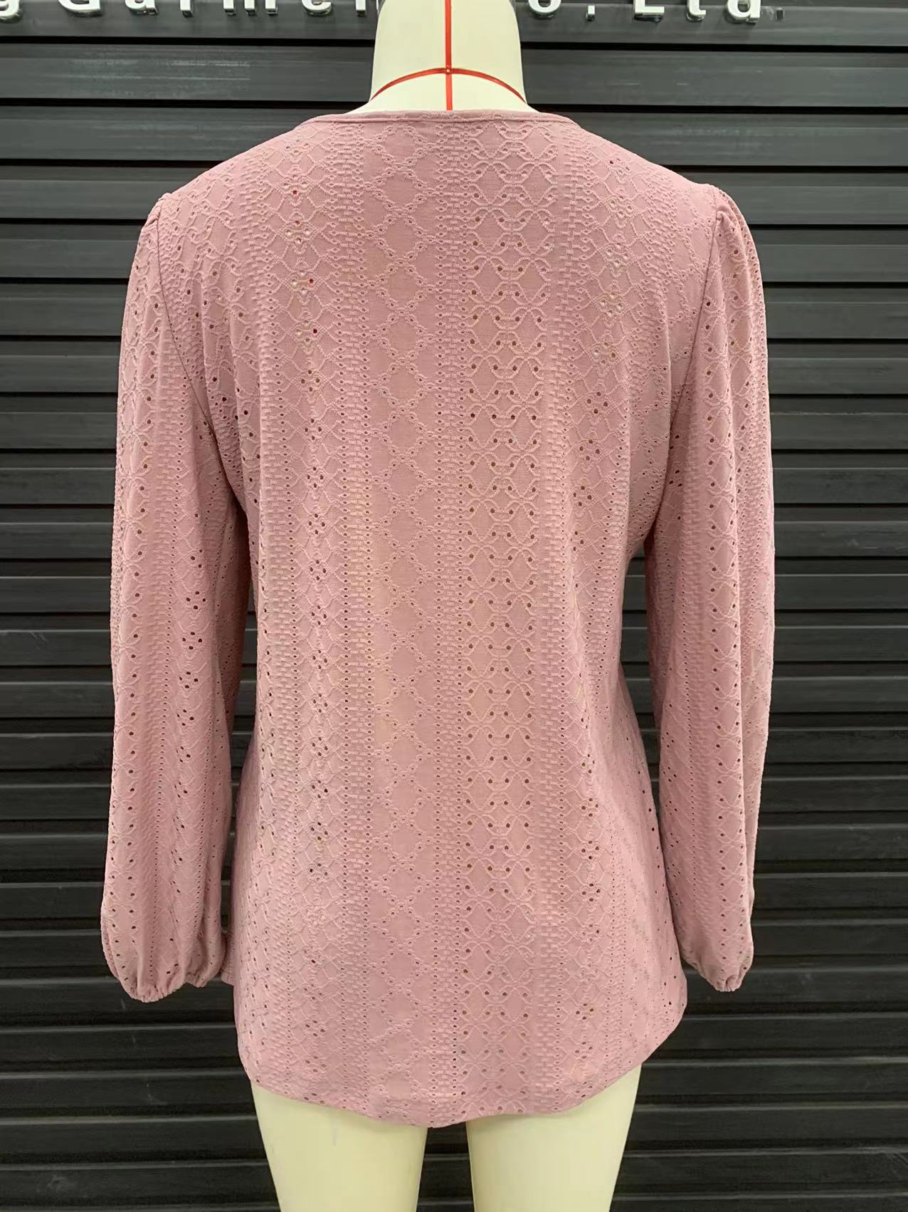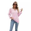 Amazon 2024 Comércio exterior transfronteiriço europeu e americano nova moda com decote em V botão oco solto camiseta de manga comprida top para mulheres