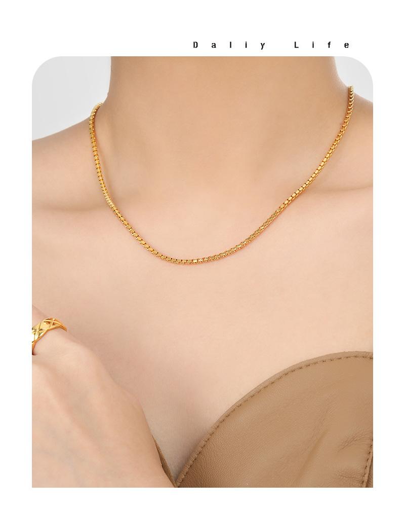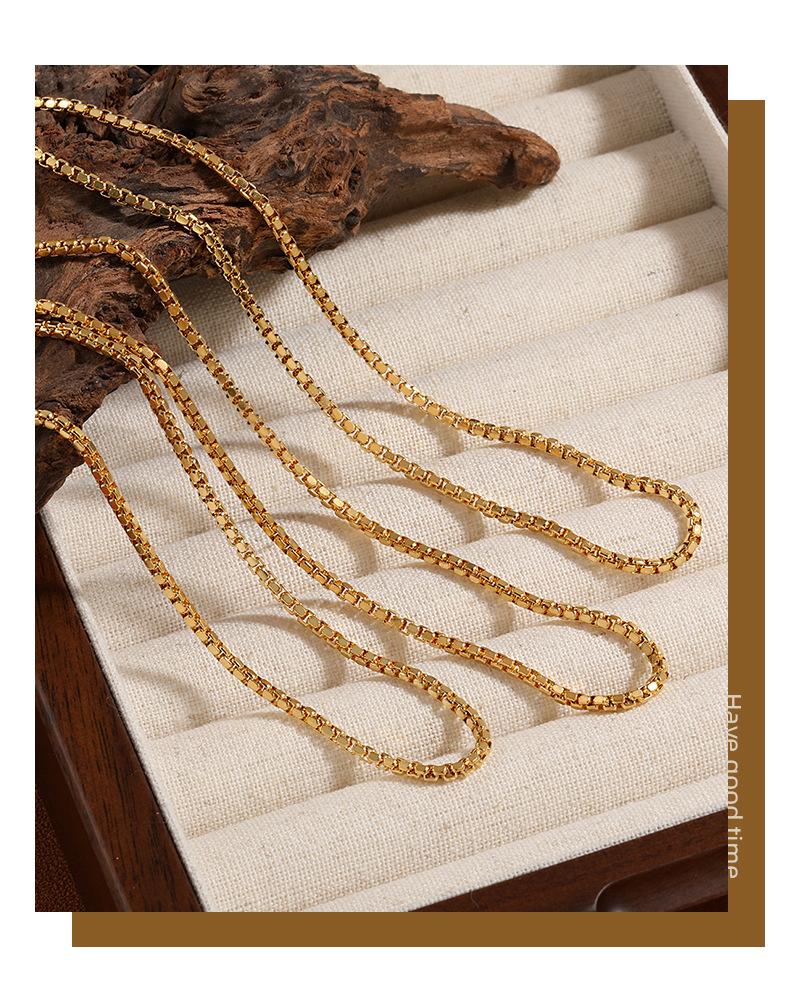 Moda Personalidade Europeia e Americana Transfronteiriça Novo Nicho Simples Caixa Quadrada Corrente Feminina Banhada A Ouro Aço Titânio de Alta Qualidade Clavícula Corrente