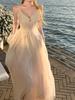 Vestido de Fada Saia Suspensório Vestido de Férias à Beira-mar Verão Praia Saia Suspensório Saia Longa Novo Branco Sanya