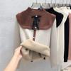 Suéter grosso forrado de lã para mulheres outono e inverno vestem veludo de uma peça meia gola alta camisa de assentamento roupa interna 2023 novo popular