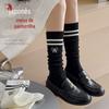 Meias de Bezerro Marrons Ins Outono e Inverno Jk Estilo Preppy Agulha Dupla Meias Longas Listradas Verticais Pretas Cor Sólida Meias de Compressão Cor Aveia