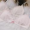 Francês sexy cetim menina pequeno peito renda verão triângulo copo algodão roupa interior terno