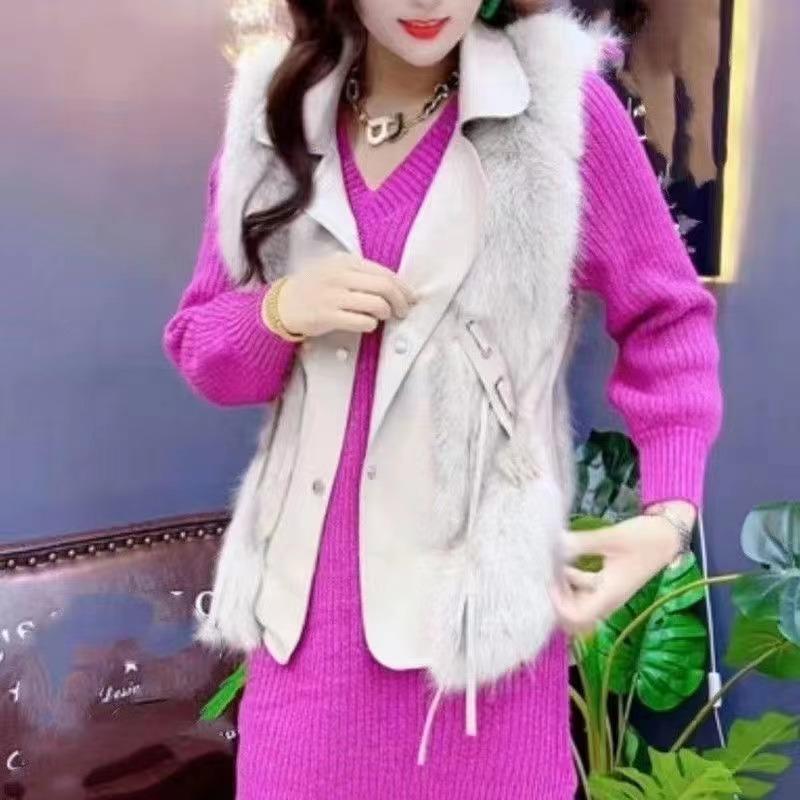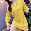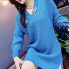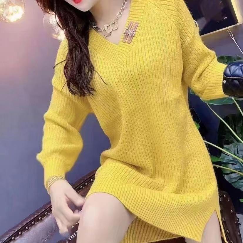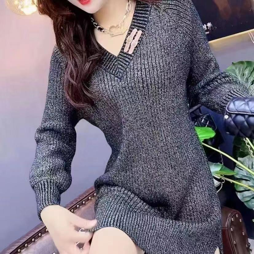 Suéter de malha com decote em V feminino 2024 outono e inverno novo estilo coreano estilo preguiçoso cor sólida moda suéter longo pulôver