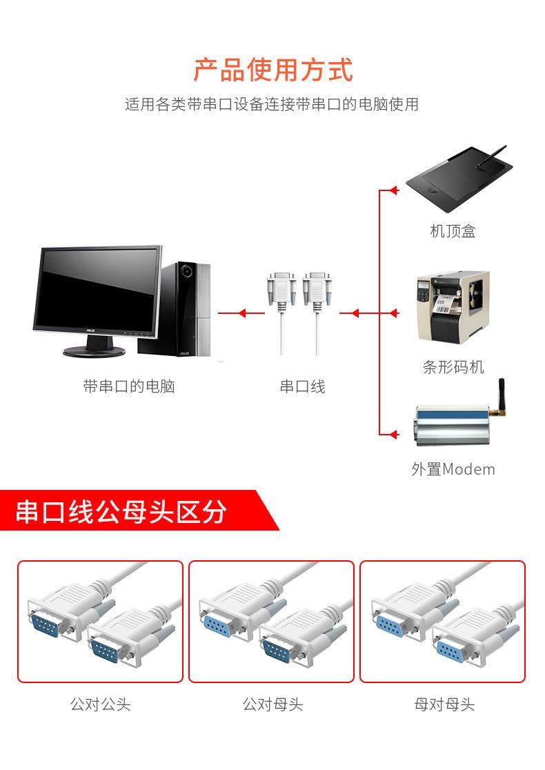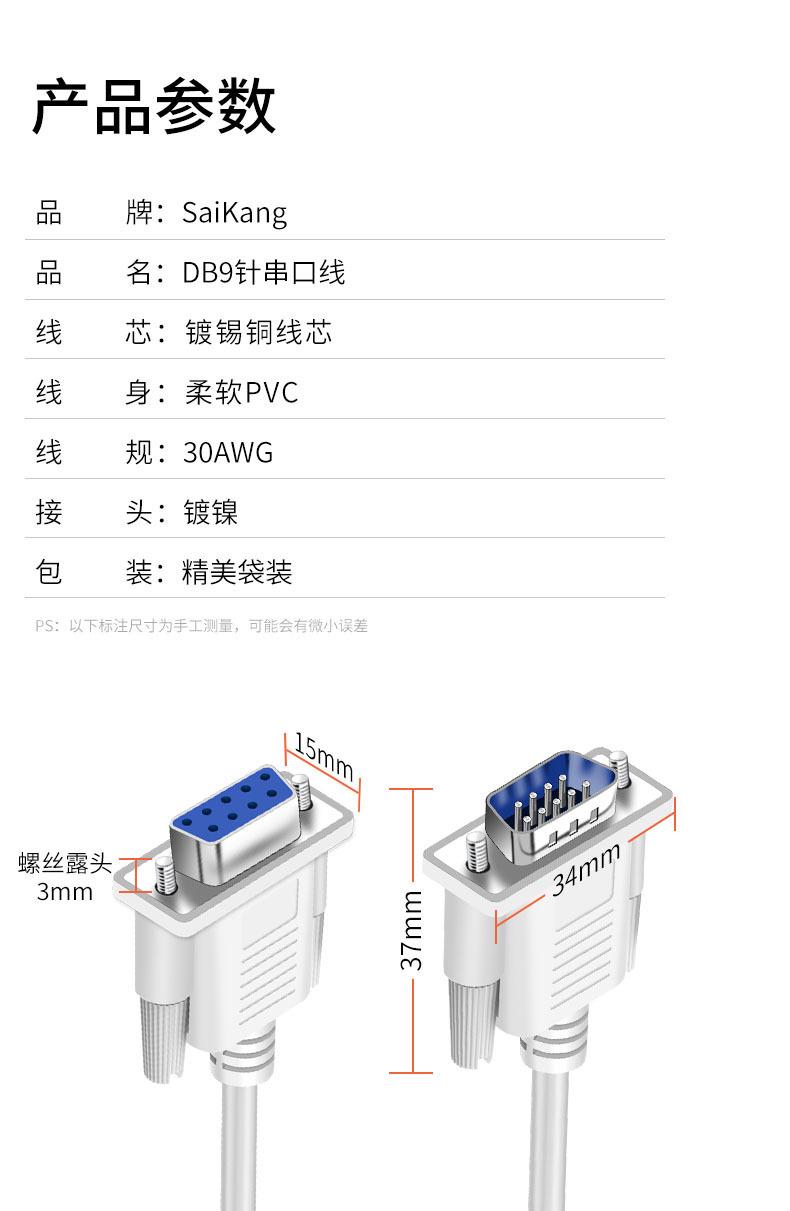 Linha serial macho e fêmea RS232 9 de nove pinos para linha de extensão DB9 COM de 9 furos 1,5 m 3 m 5 m
