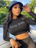 Roupas femininas transfronteiriças europeias e americanas 2024 outono novo gola redonda manga comprida curta strass letra t-shirt jaqueta em estoque