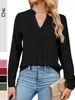 2024 Amazon Ebay Exportação Europeia e Americana Outono e Inverno Nova Decote V Botões Plissada Feminina Cor Pura Manga Longa Tamanho Grande Camiseta