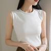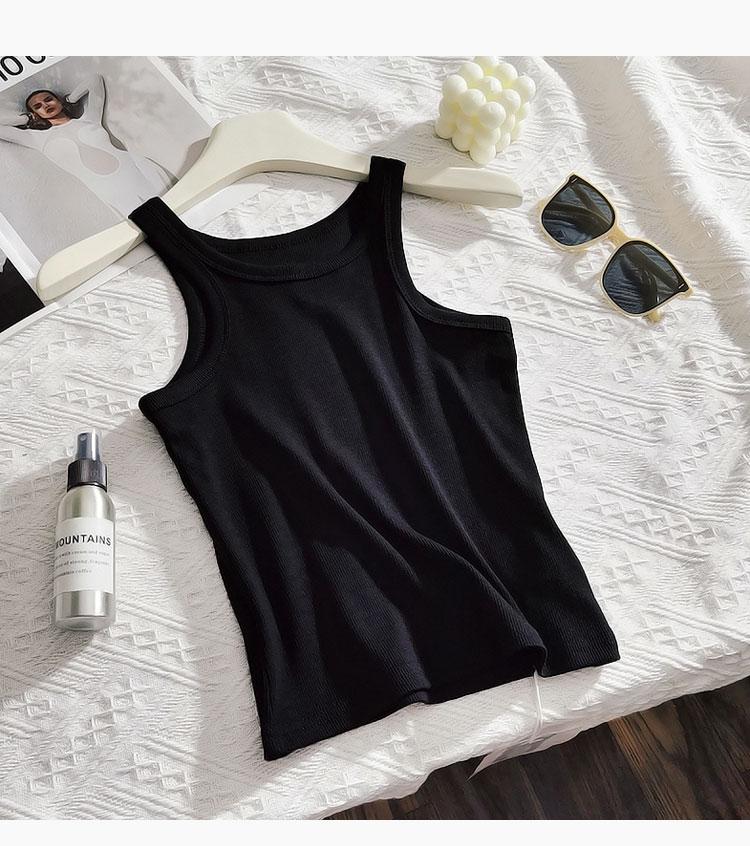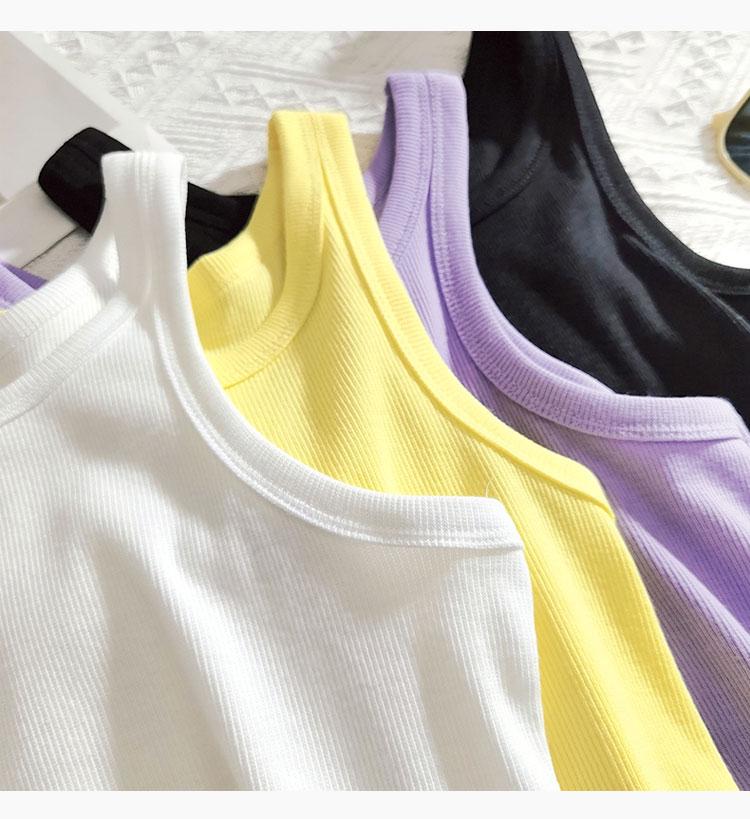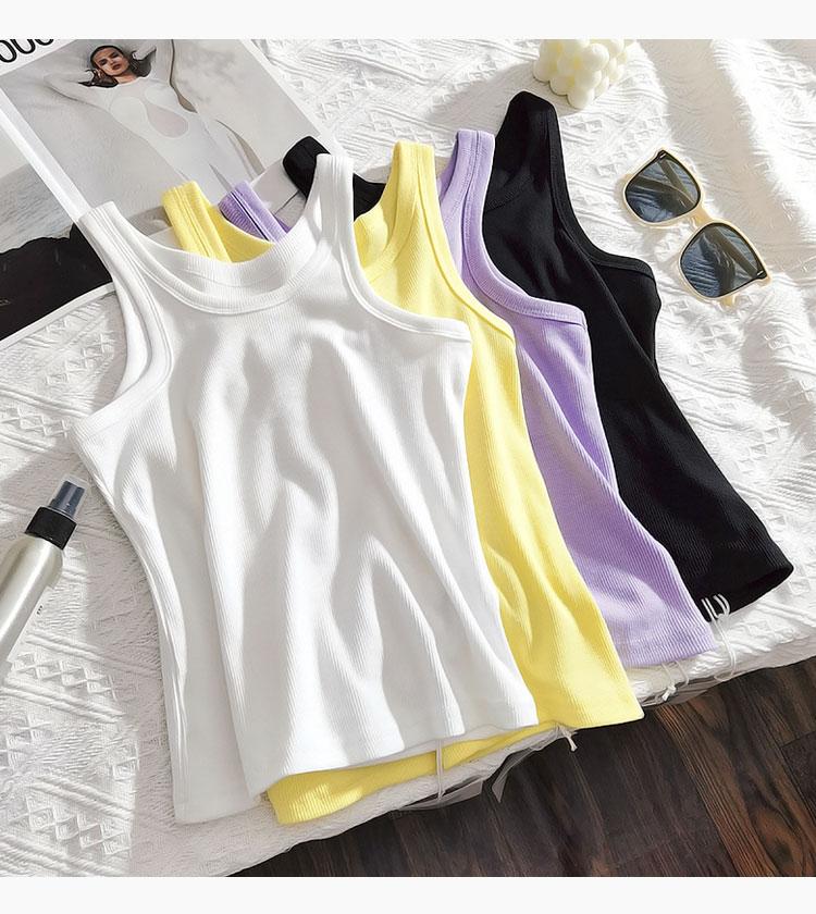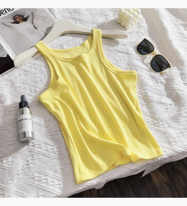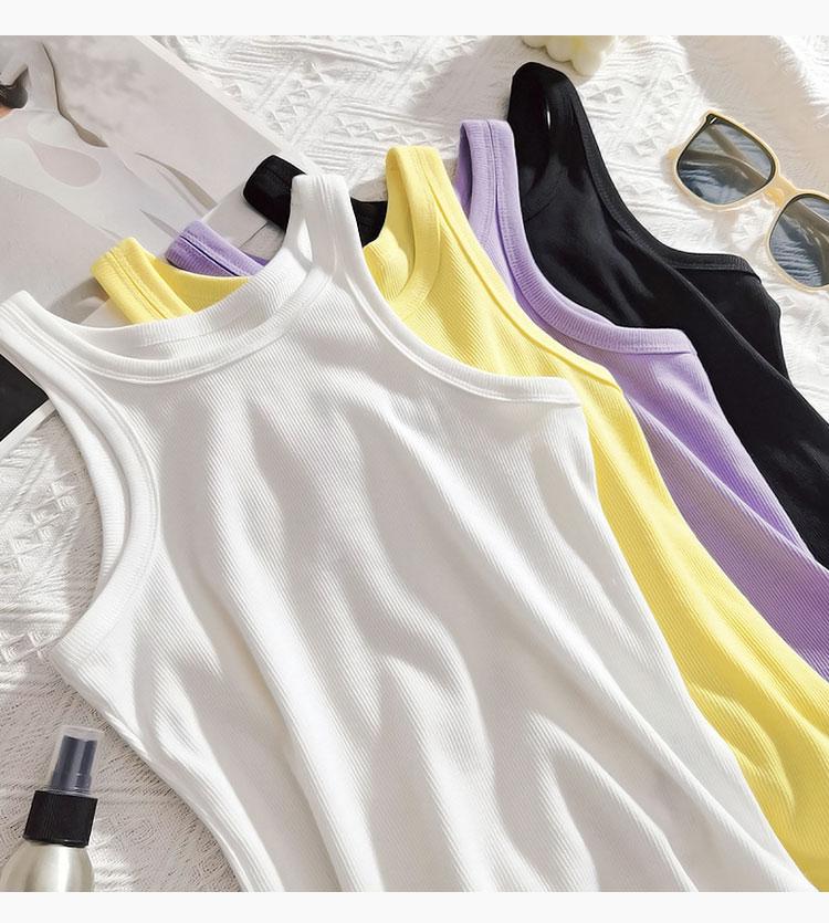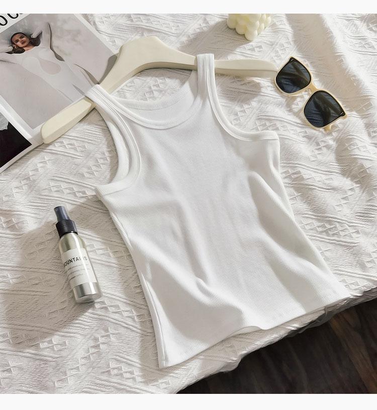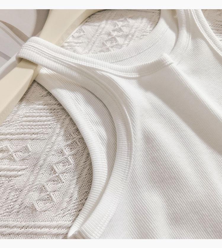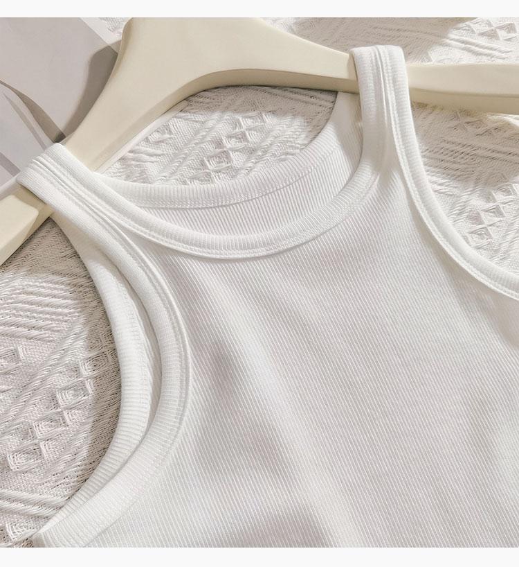 Regata Branca Curta para Mulheres 2025 Novo Estilo Algodão Canelado Uso Interno e Externo Ajuste Slim Top Sem Mangas para Verão