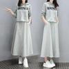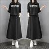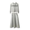 Enviado Estilo Europeu Primavera 2024 Saia Longa com Carta Feminina Moda Casual Solta Conjunto de Duas Peças Cinza