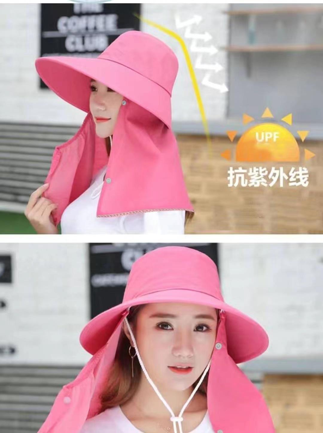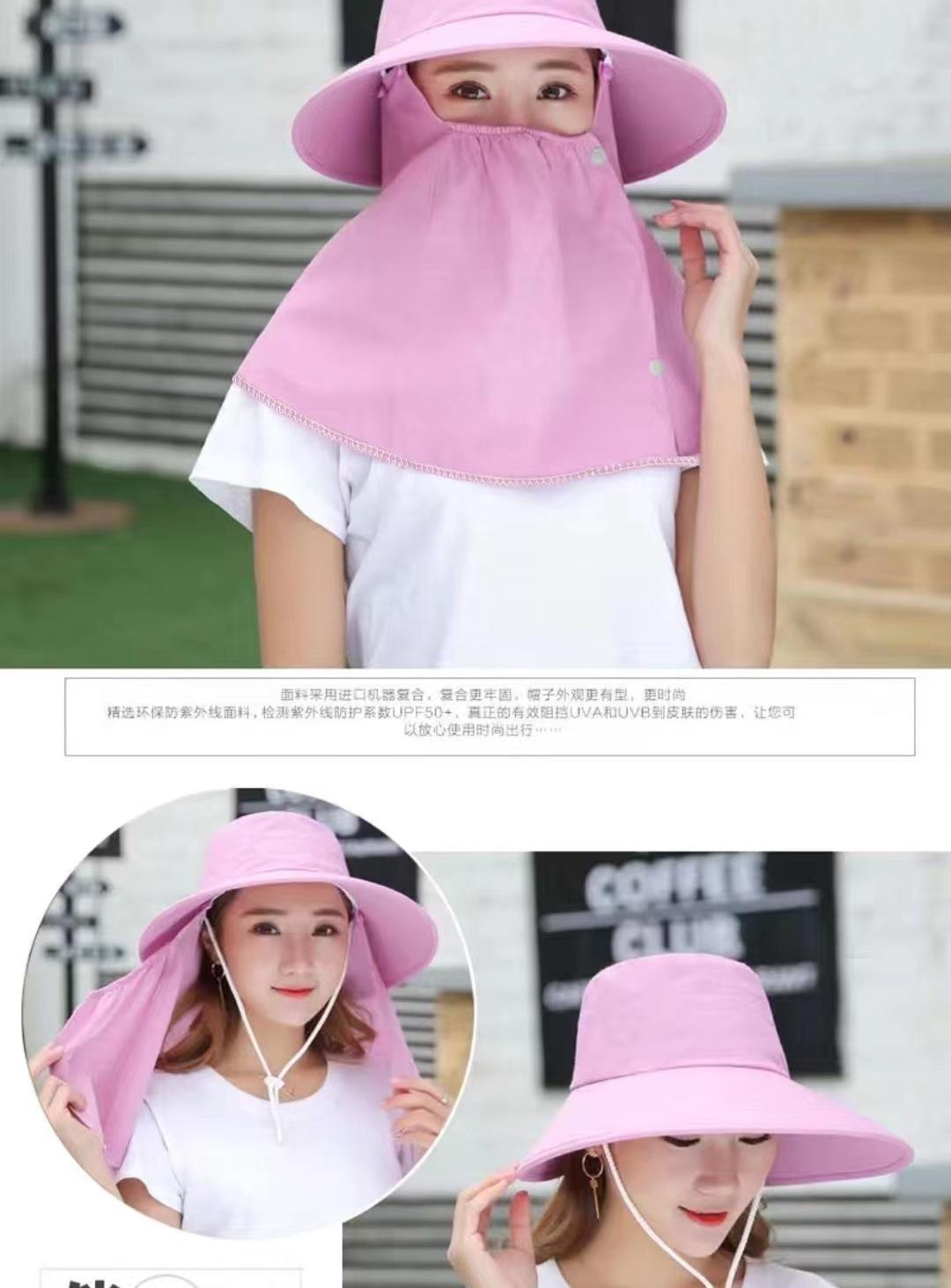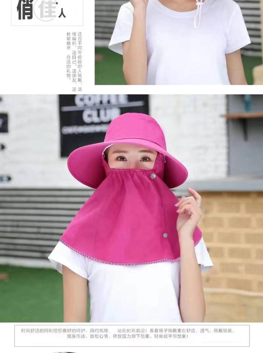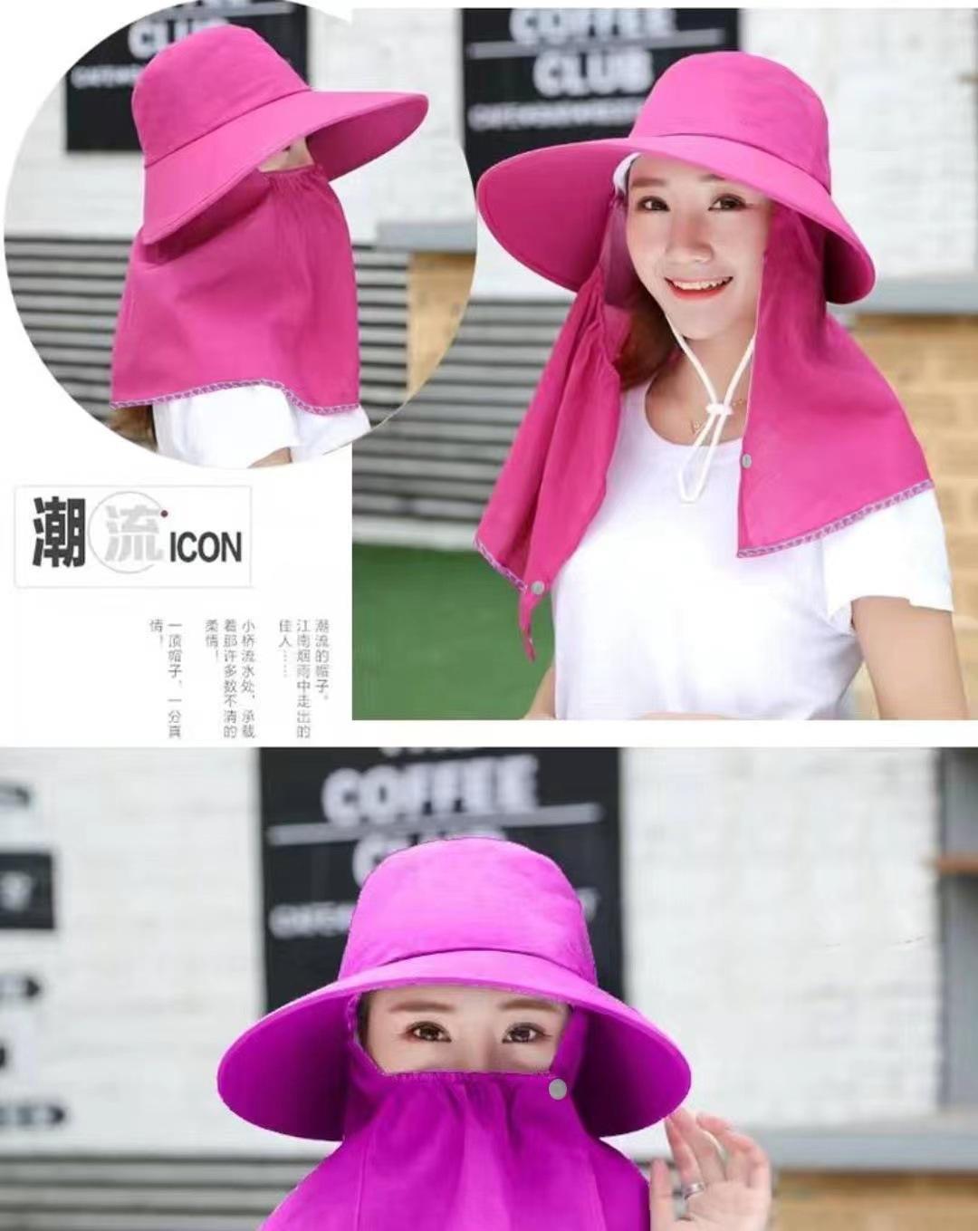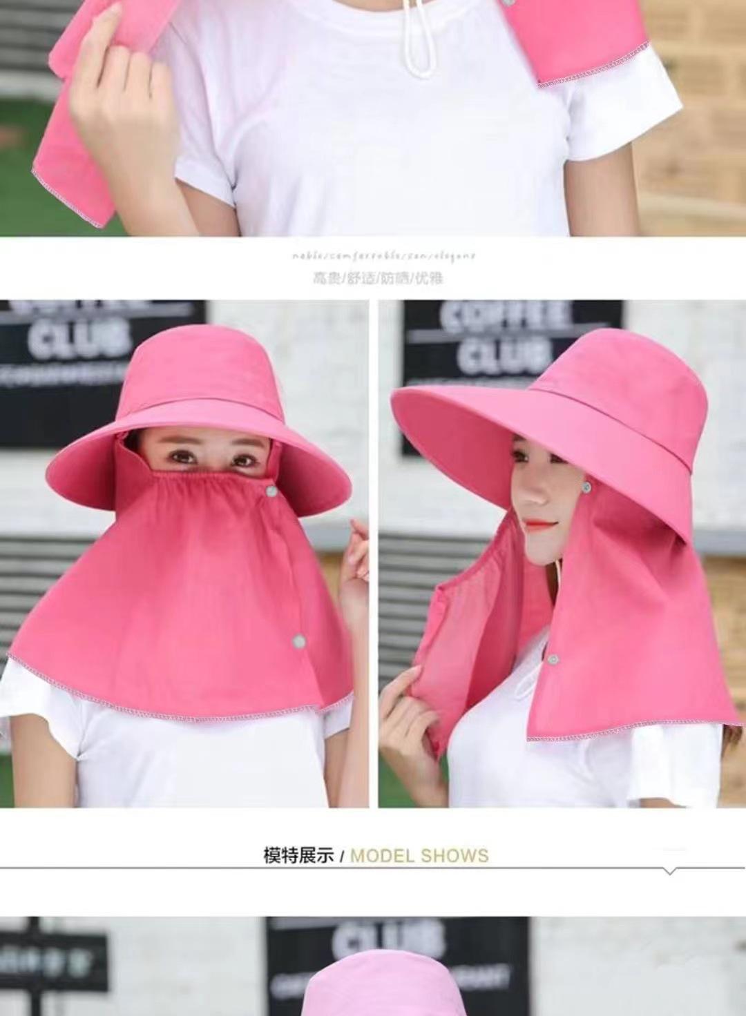 Chapéu de Proteção Solar Chapéu de Sol Feminino de Verão com Máscara e Cobertura Facial Aba Larga Versátil Chapéu Fresco UV Colheita de Chá Ciclismo