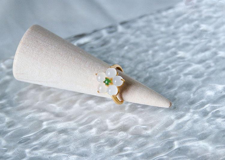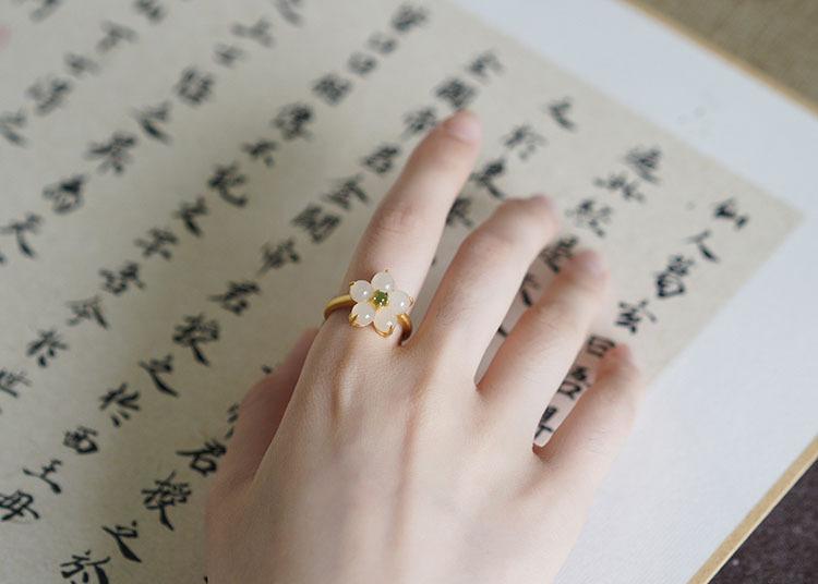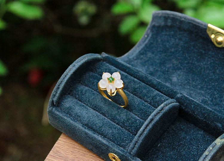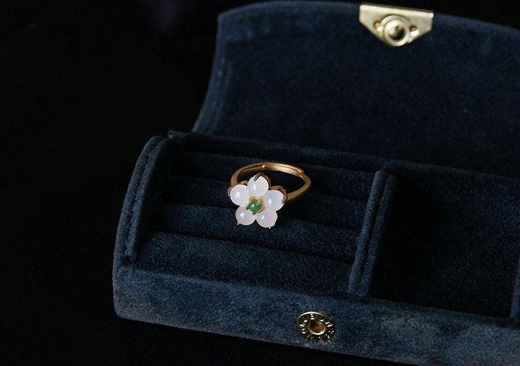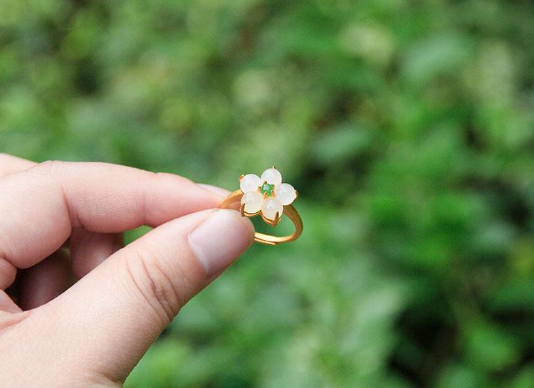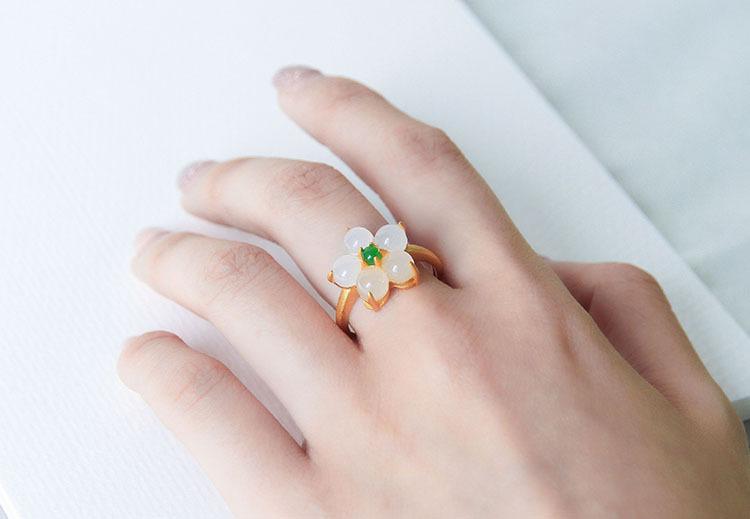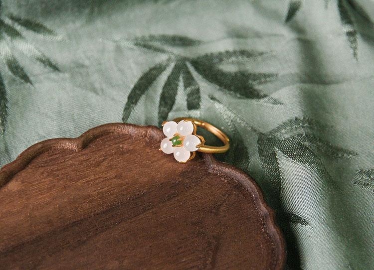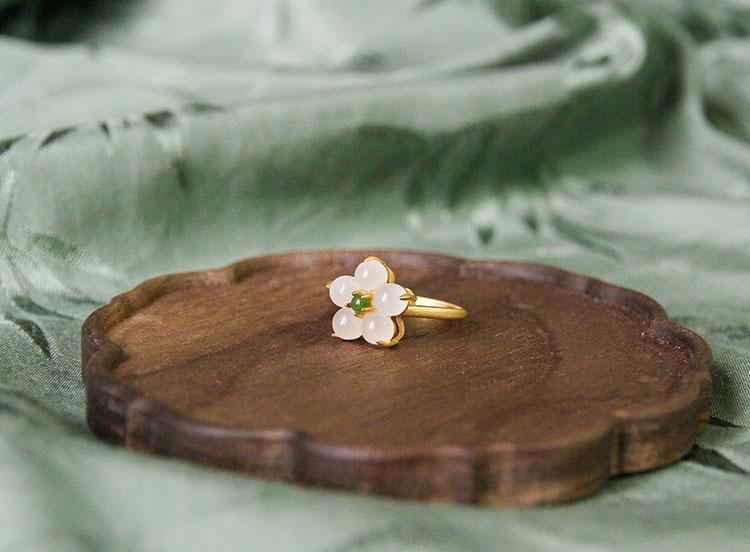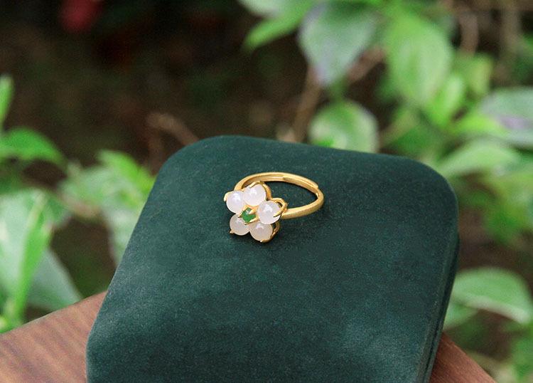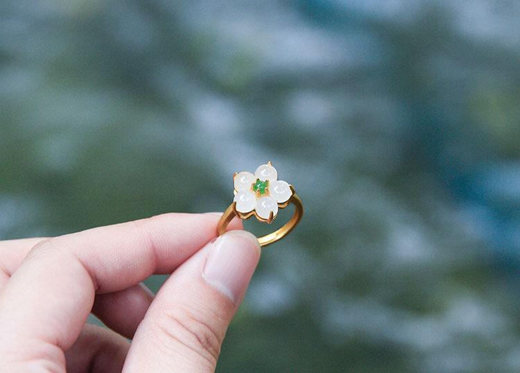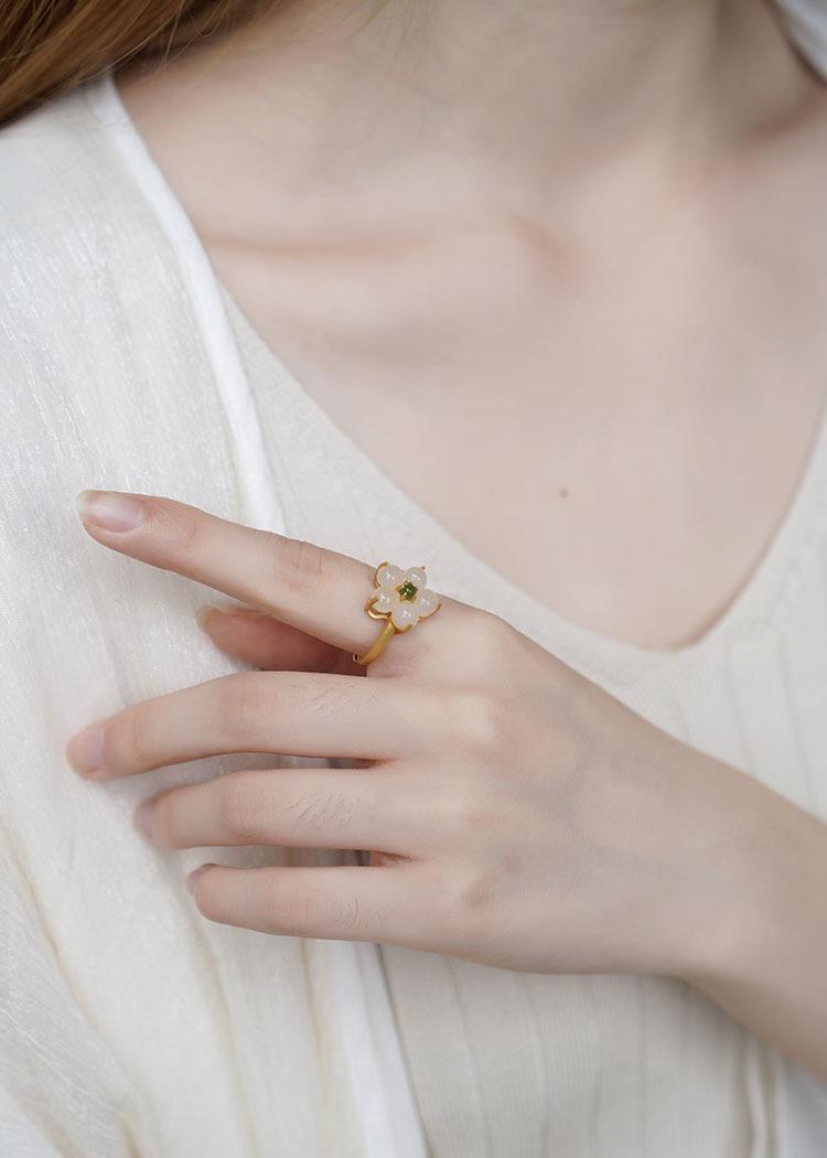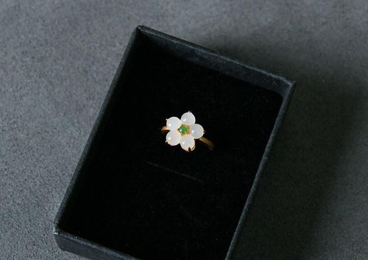 Novo Anel de Flor de Jade Branco Hotan Jade Moda Simples Compacto Anel Feminino Anel Versátil Diário para Namorada