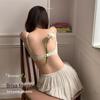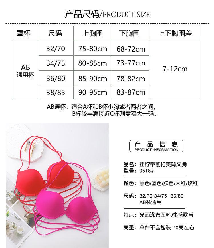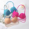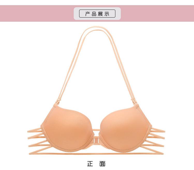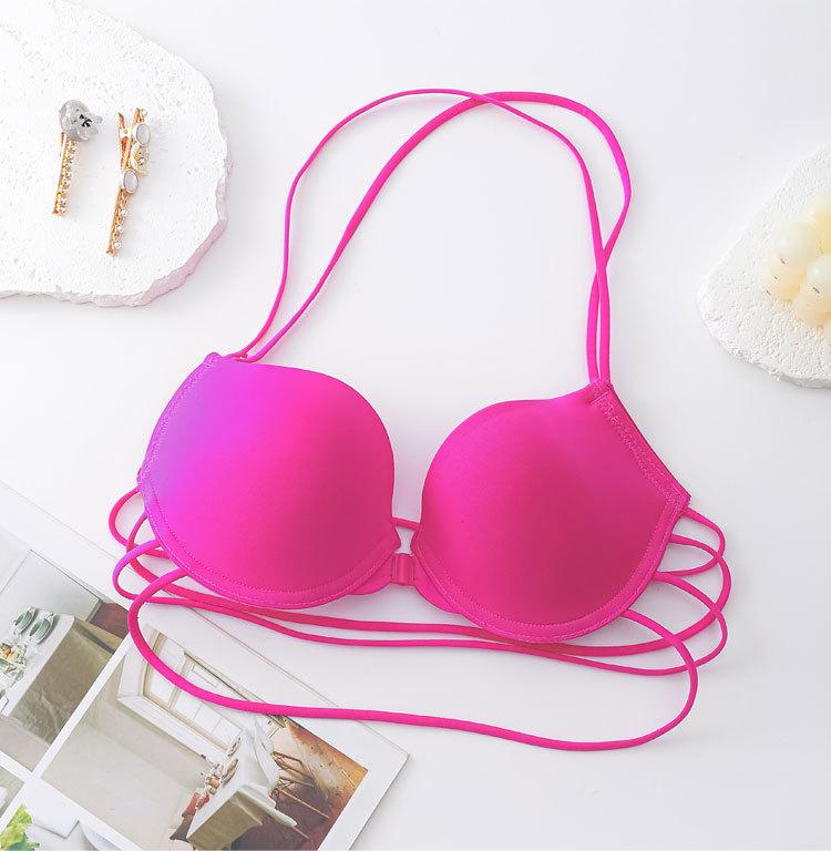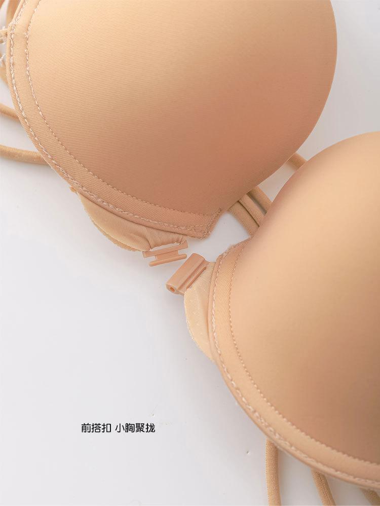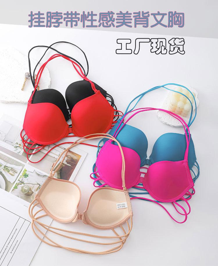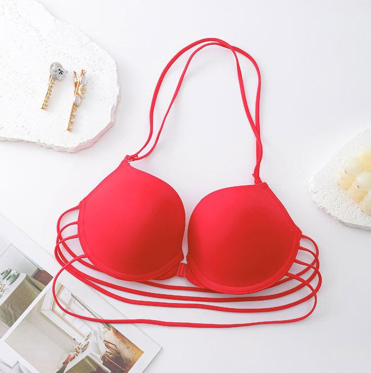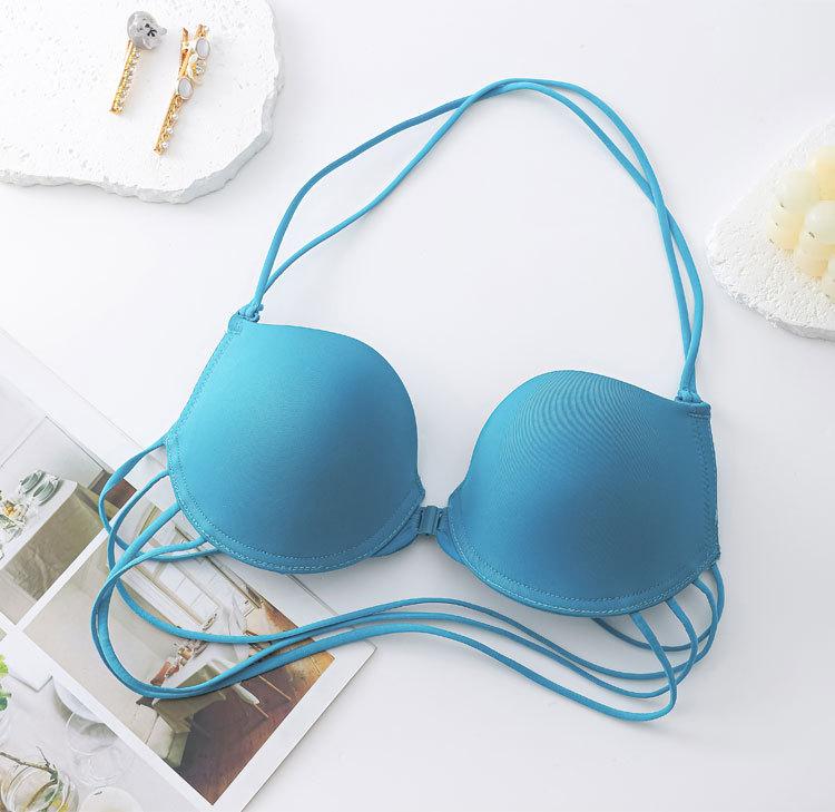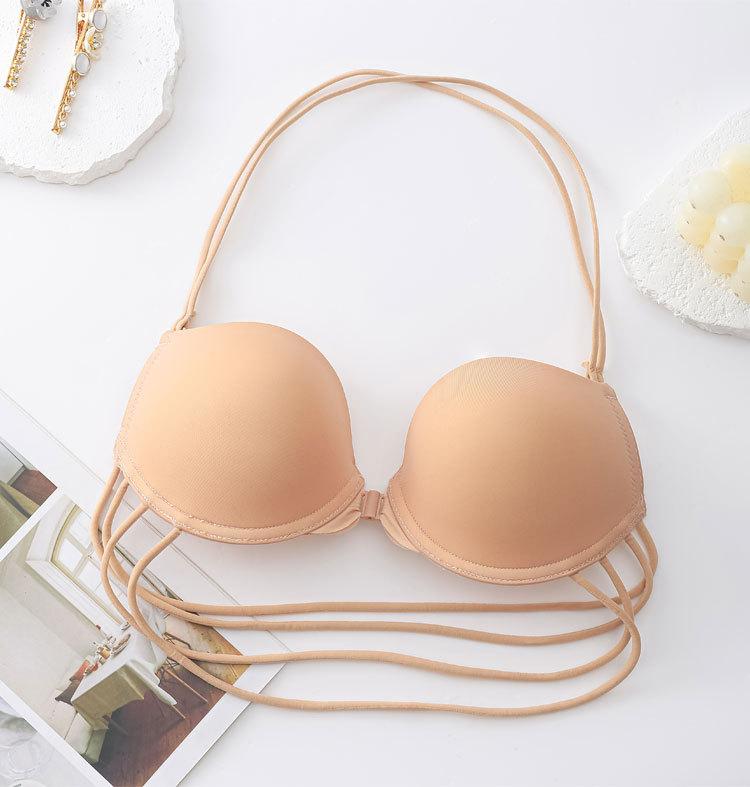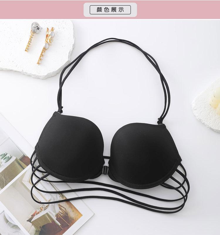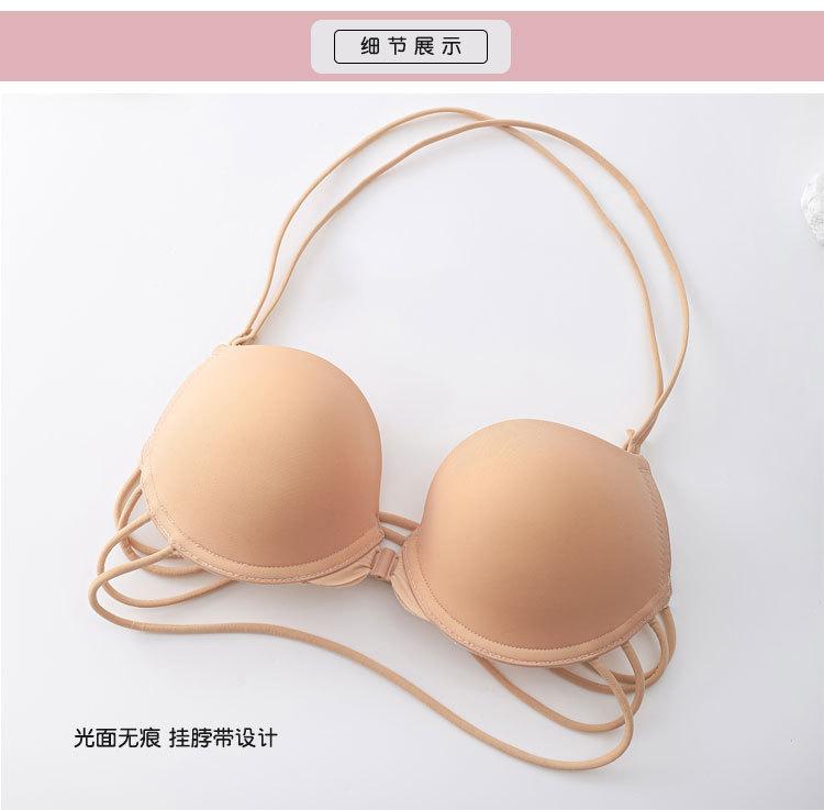 Verão Big Backless Underwear Girls' Hanging Neck com Gloss Seamless Bra Front Buckle Peito Pequeno Engrossado Push-up Pequeno Sutiã