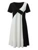2024 Amazon Feminino Comércio Exterior Novo Costura Decote Cruzado Fivela Decorativa Vestido de Manga Curta