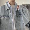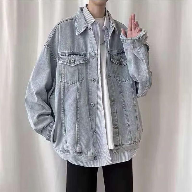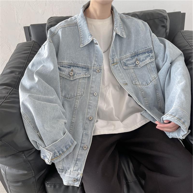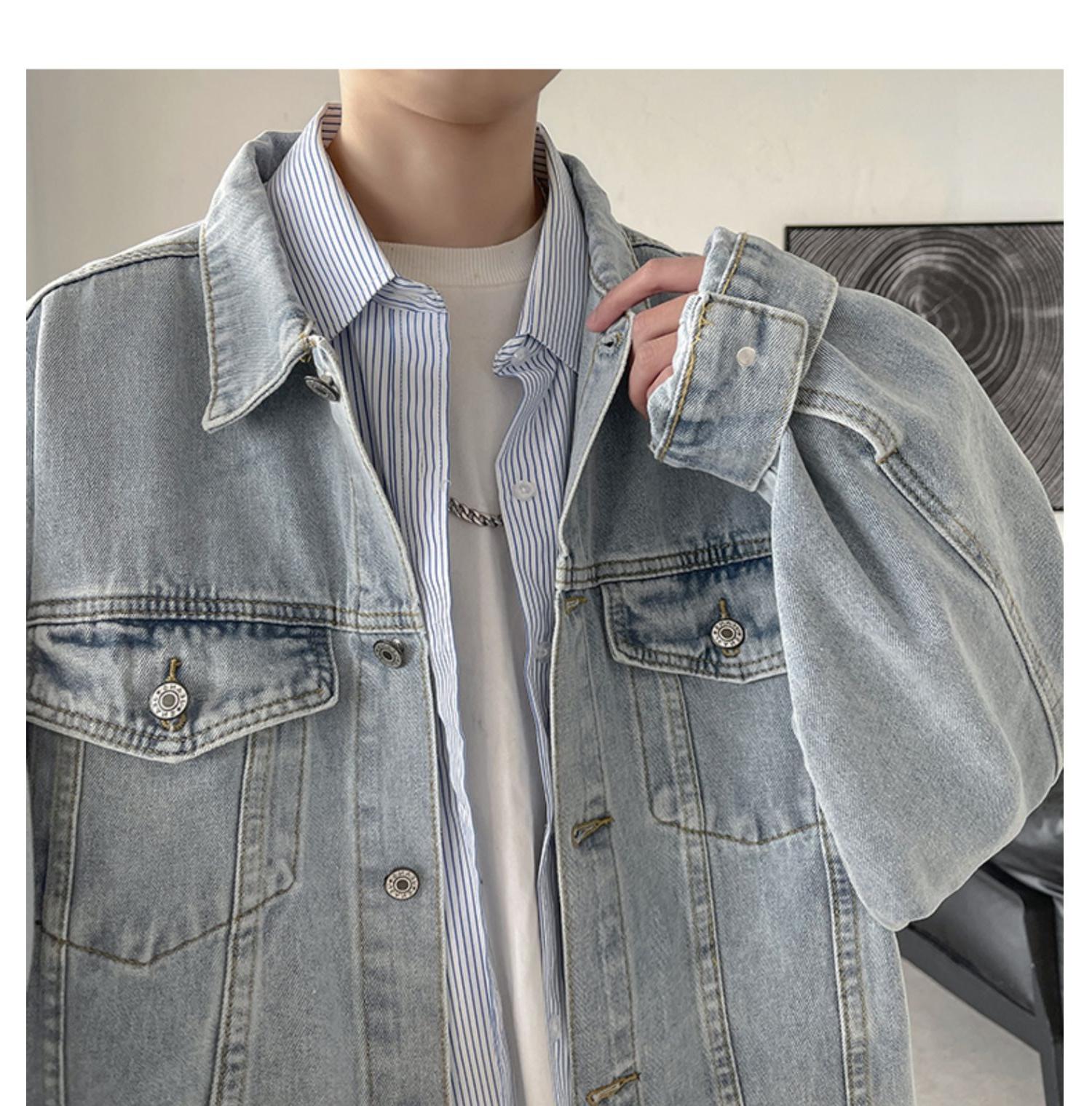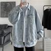 Jaqueta jeans de cor clara masculina primavera e outono solto plus size lavado ferramental top coreano elegante casual jaqueta fina