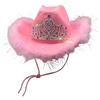 Chapéu de cowboy com bordas de penas lantejoulas rosa fábrica spot chapéu de cowboy ocidental coroa rosa chapéu de cowboy