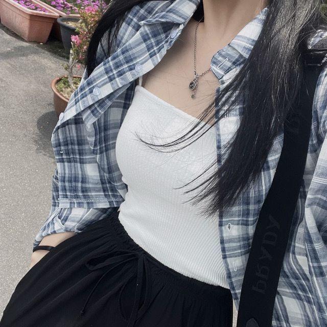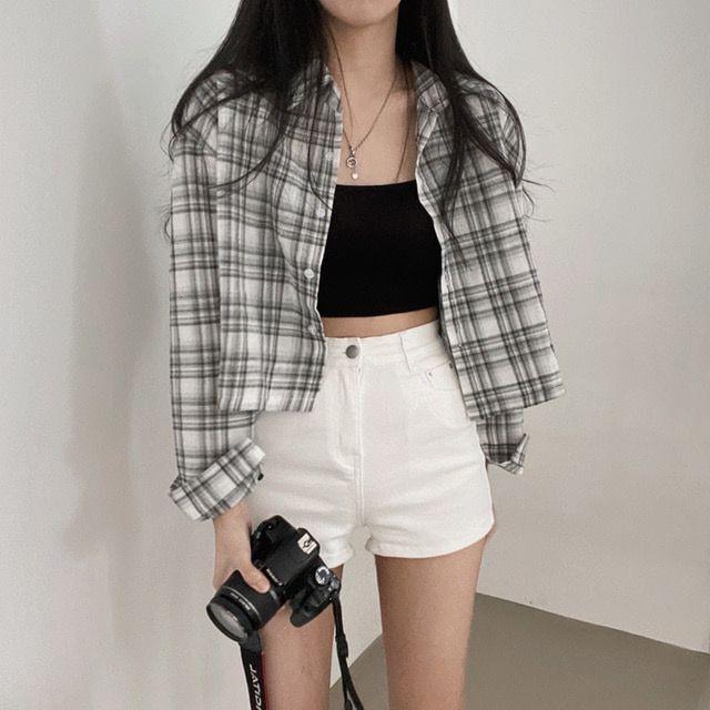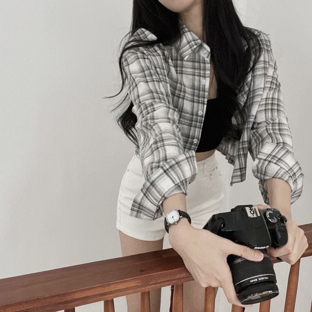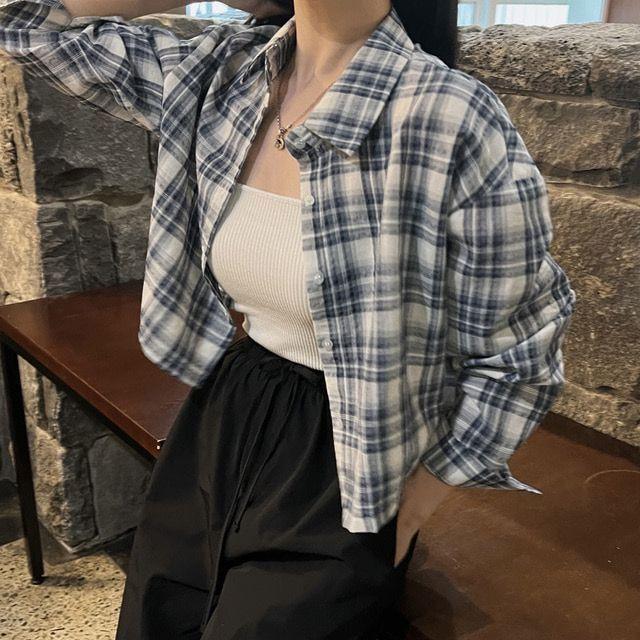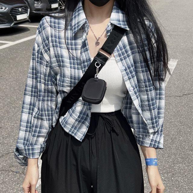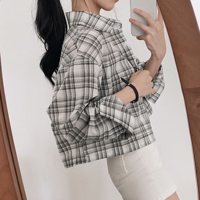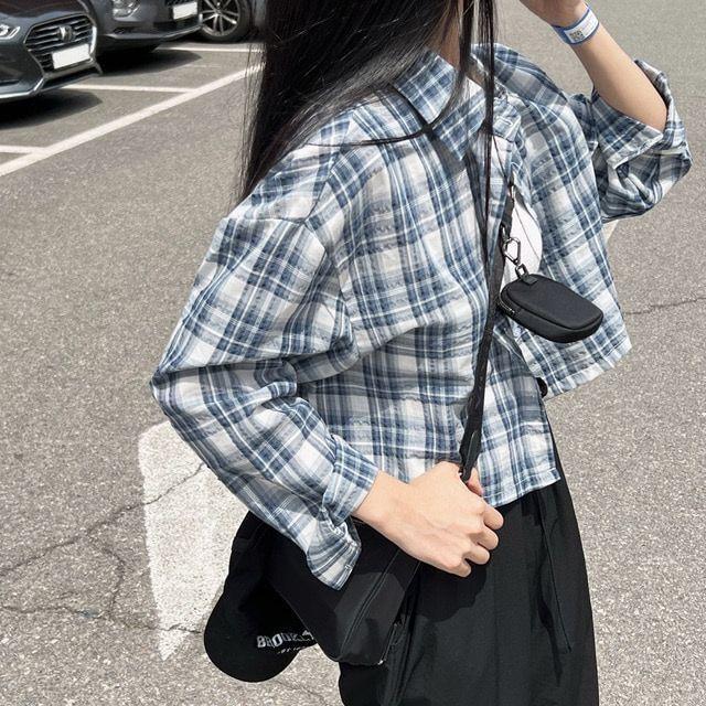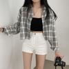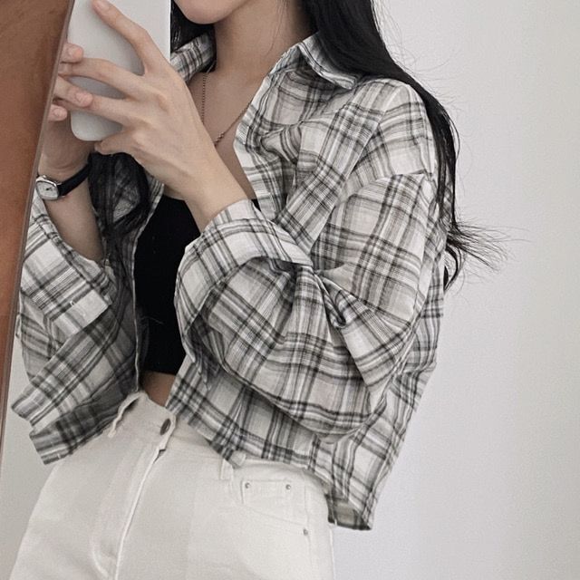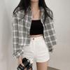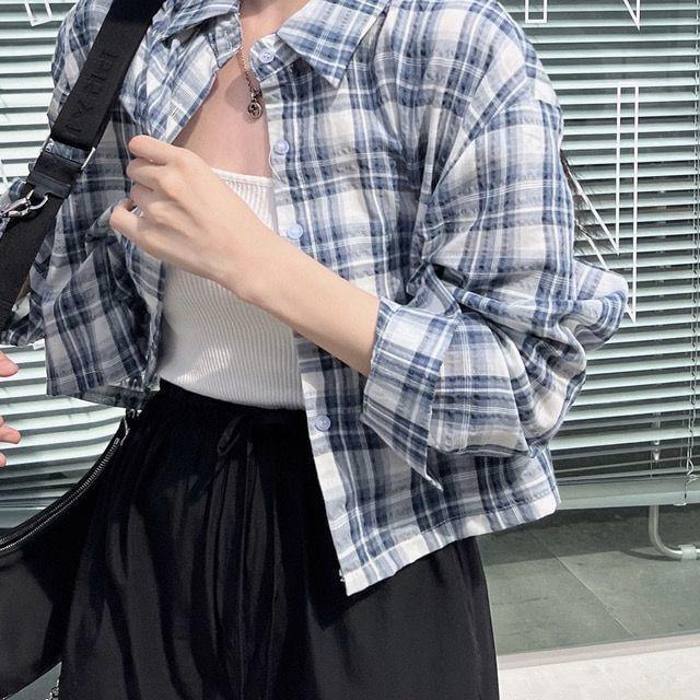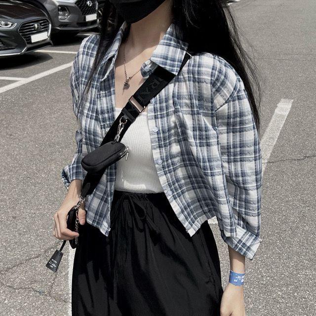 Cardigan Feminino Fino Verão Novo Proteção Solar Camisa Fina Xadrez Retrô Camisa de Manga Comprida Curta Jaqueta Estilo Coreano Pequeno e Fresco