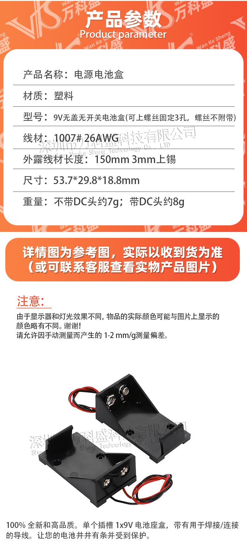 Modelo: caixa de bateria de 9 V sem tampa e interruptor (3 furos podem ser fixados com parafusos, parafusos não incluídos)