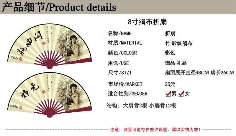 Leque dobrável de seda de 8 polegadas(incluindo caixa de embalagem)