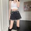 Shorts Jeans Rappped Verão Feminino Estilo Ins Design Fino Reto Cintura Alta Linha A Casual Perna Larga Vintage Hot Pants