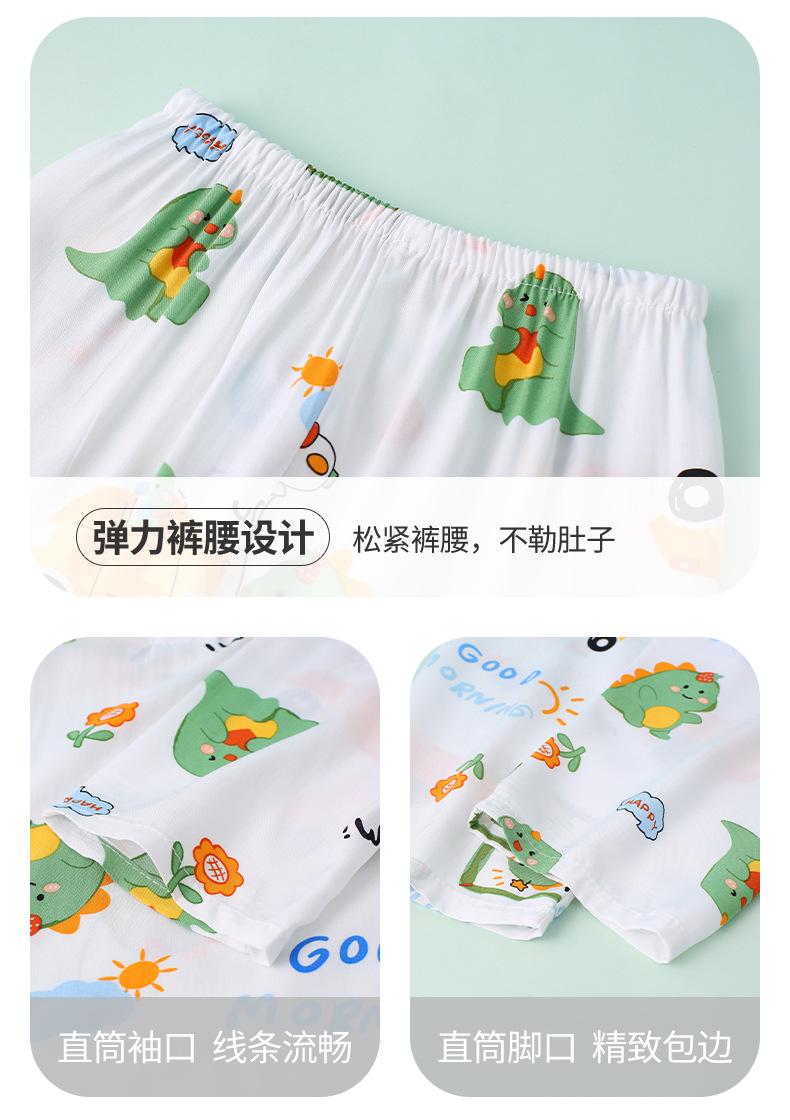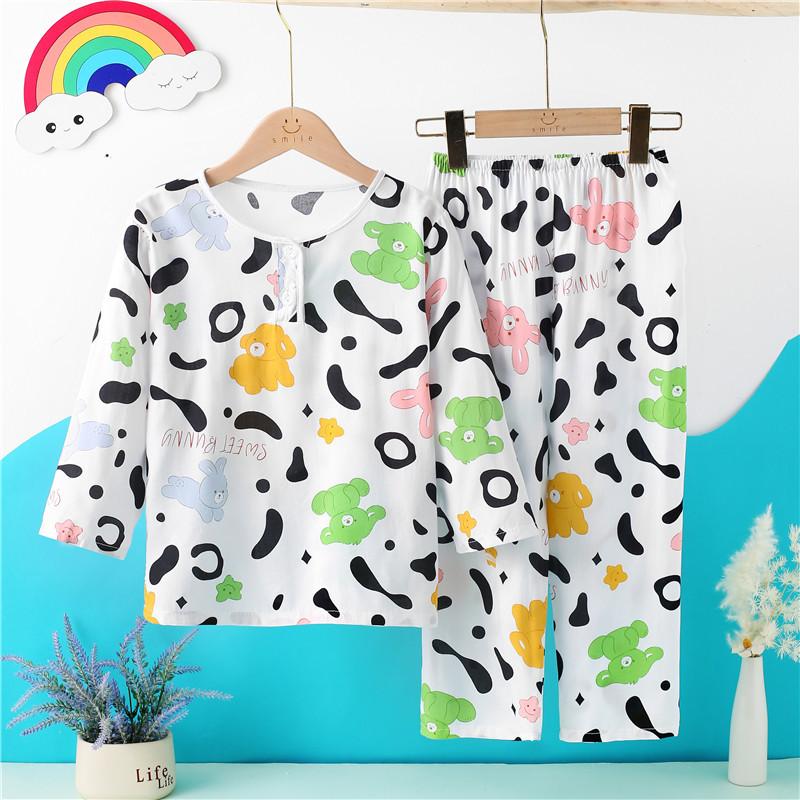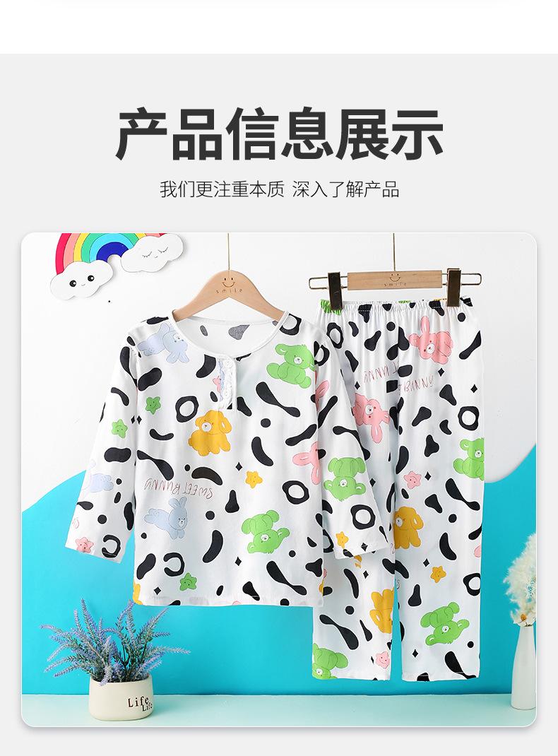 Roupas de Casa Infantis Algodão Seda Conjunto Verão Meninos e Meninas Pijamas Algodão Artificial Conjunto de Duas Peças Roupas de Algodão Seda para Ar Condicionado Roupas Infantis