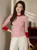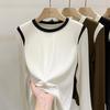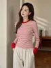 # Produtos de Alta Qualidade # Camiseta Listrada de Contraste de Barra Alta Feminina Manga Longa 2025 Outono e Inverno Novo Estilo Camisa Básica de Algodão Puro