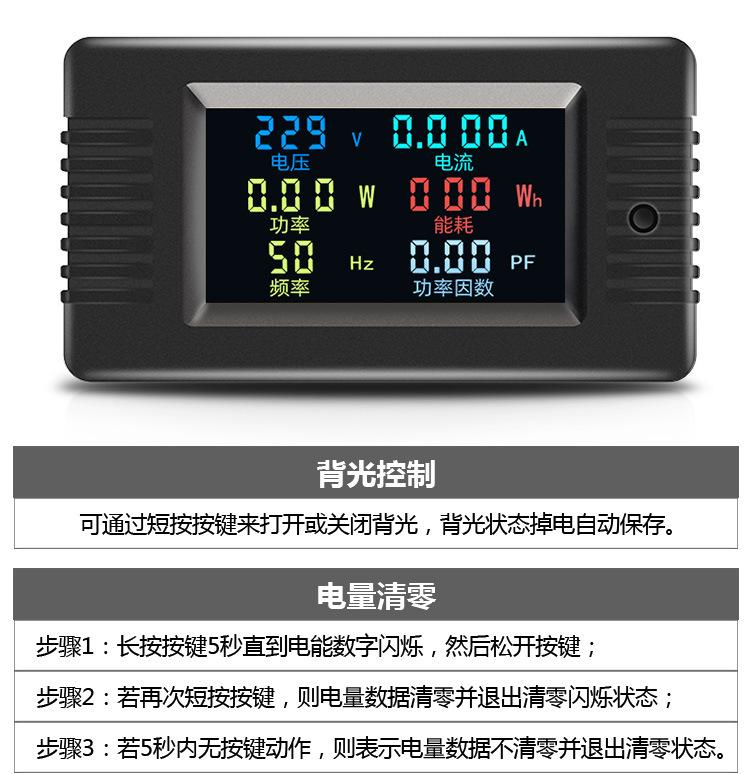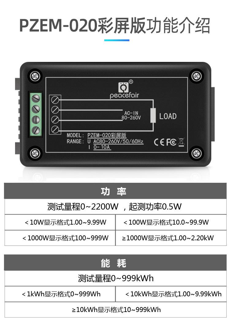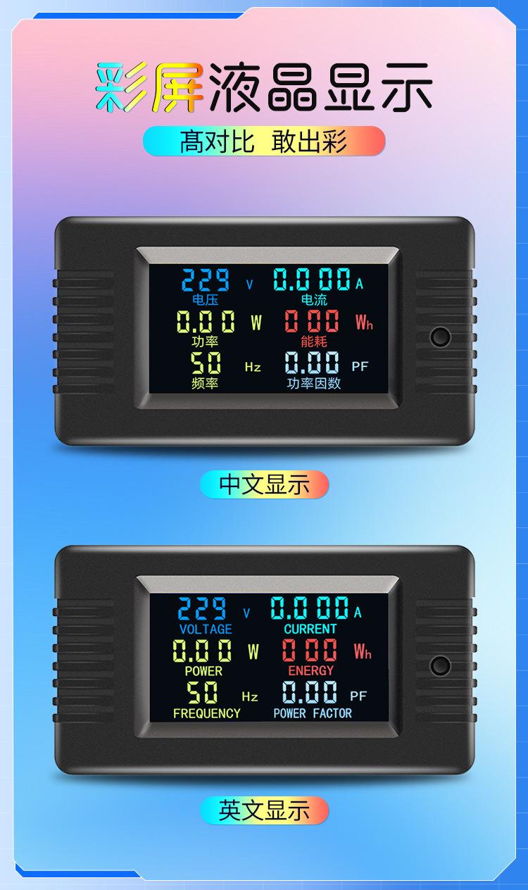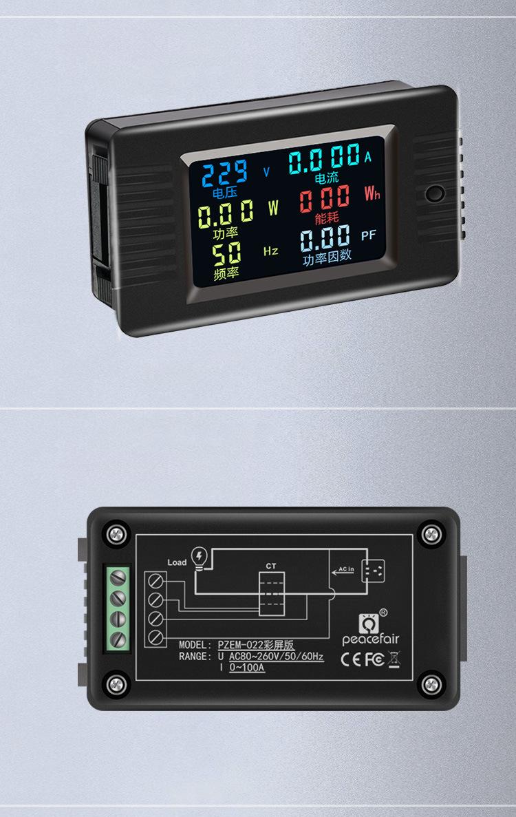 Compre Peacefair AC display digital multifuncional monitor de energia tensão corrente potência frequência watt-hora medidor tela colorida no atacado no Joom.pro