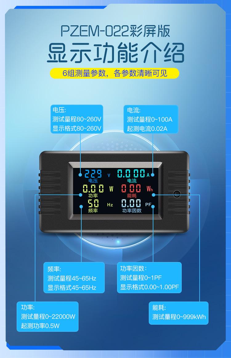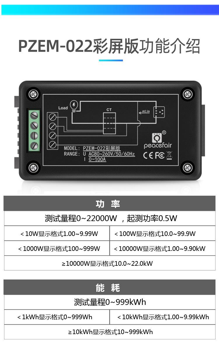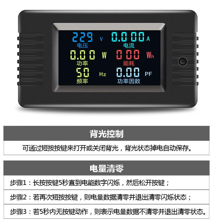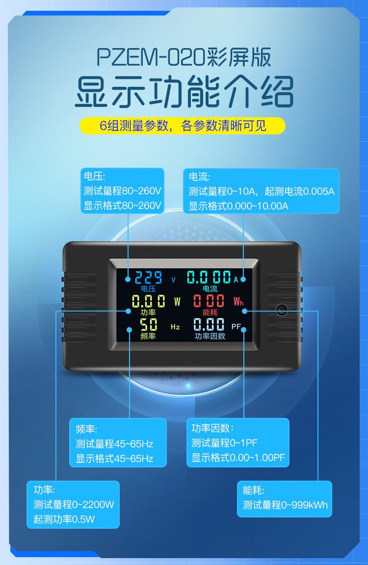 Compre Peacefair AC display digital multifuncional monitor de energia tensão corrente potência frequência watt-hora medidor tela colorida no atacado no Joom.pro