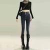Jeans Skinny Vintage para Mulheres 2024 Novo Primavera e Outono Cintura Alta Stretch Pequeno Forrado de Lã Slim Calças Lápis
