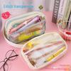 Lápis de estudante de alto valor Caso Transparente Zíper Duplo Portátil Grande Capacidade Papelaria Bolsa Armazenamento de Artigos de Papelaria Multifuncional Fresco Bolsa