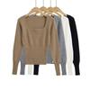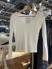 Camisa feminina estilo BM estilo outono Brandy mesmo estilo estilo americano simples base BM algodão vintage gola V camiseta top