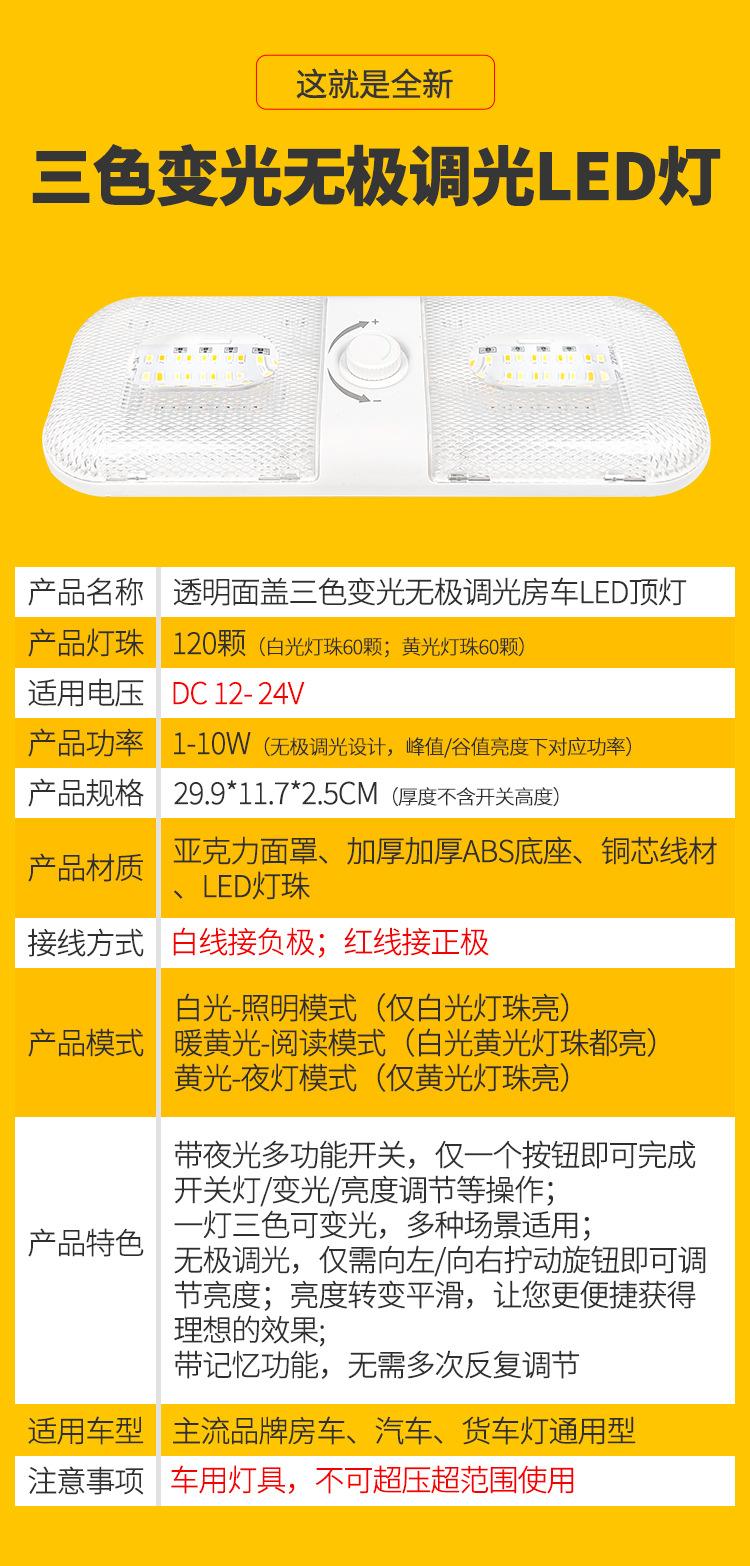 Transparent Mask Tricolor Dimming Stepless Dimming 120 Bead Highlight RV Light