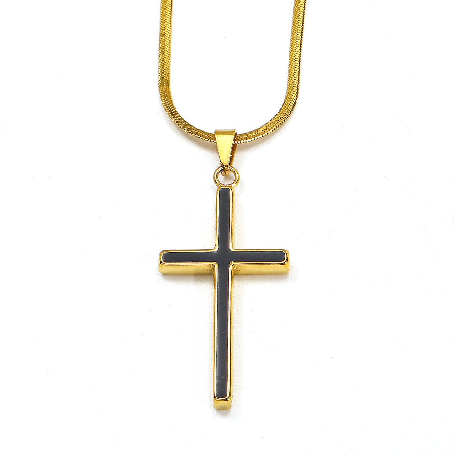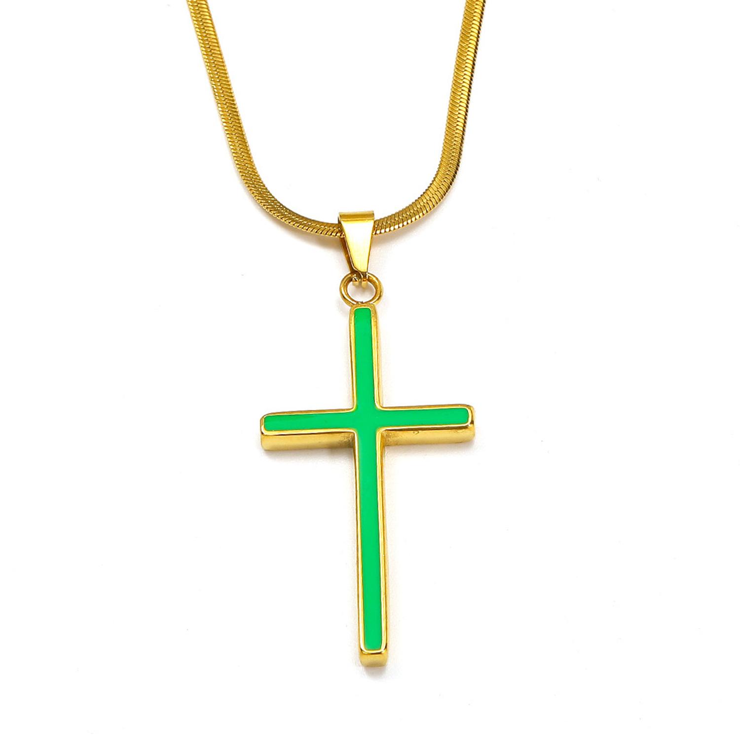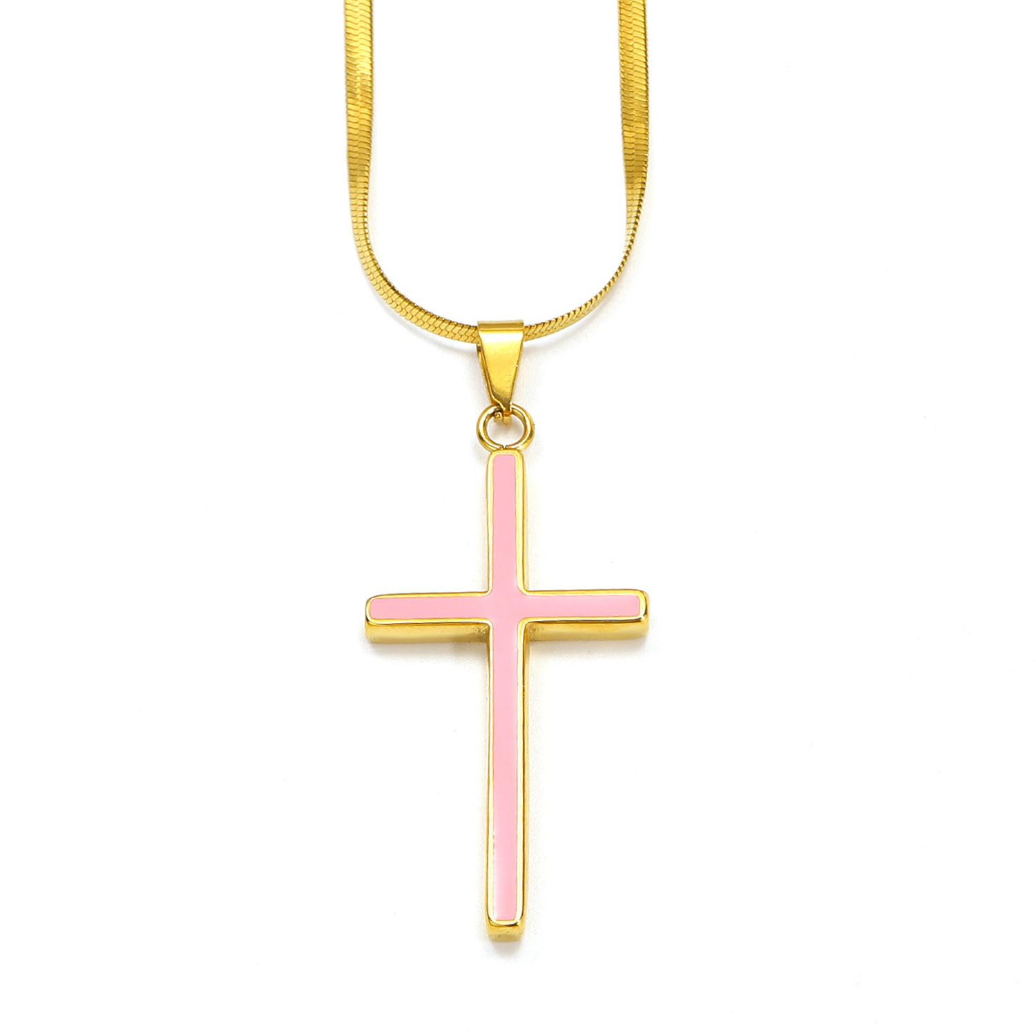 Europeu e Americano Ins Moda Simples Colar de Cruz de Óleo Feminino de Alta Qualidade Banhado a Aço Titânio 18k Ouro Pingente Sem Cor