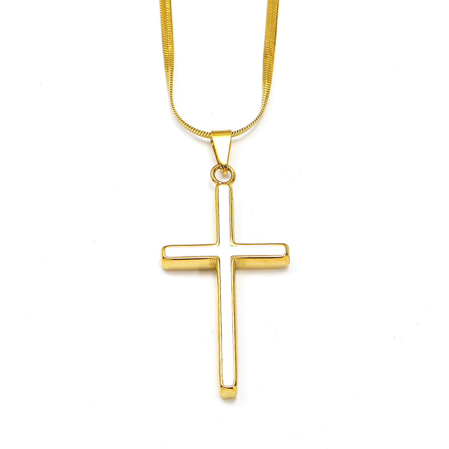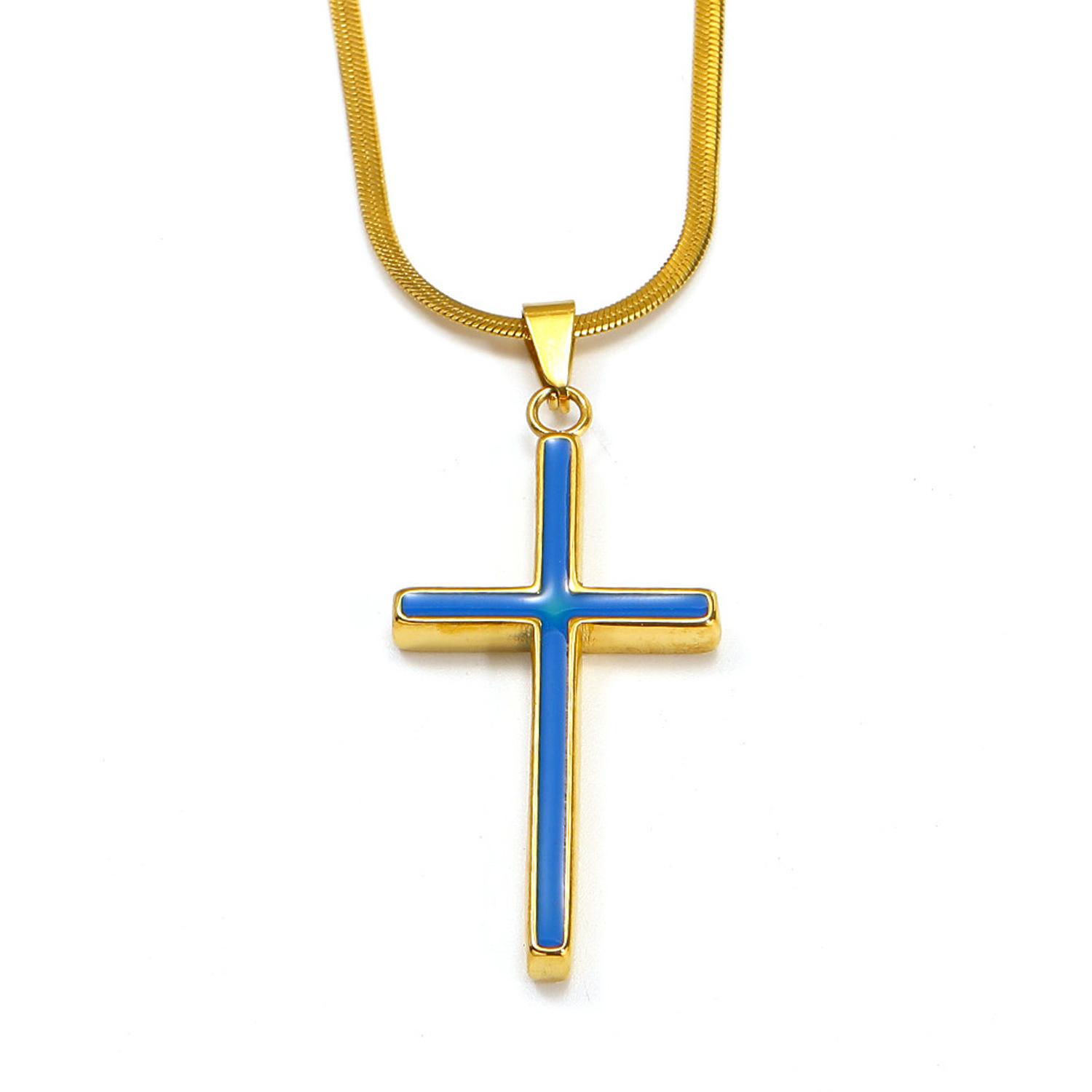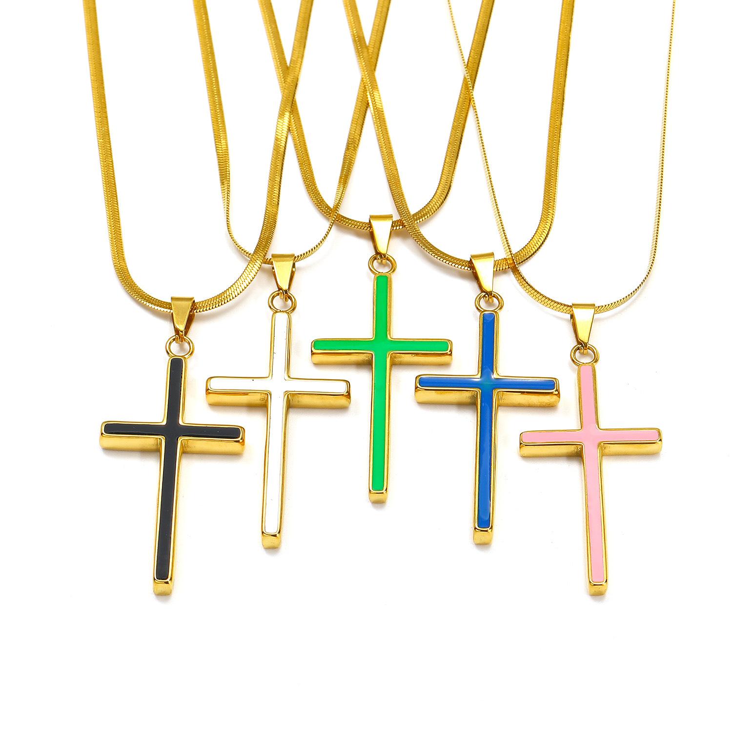Europeu e Americano Ins Moda Simples Colar de Cruz de Óleo Feminino de Alta Qualidade Banhado a Aço Titânio 18k Ouro Pingente Sem Cor