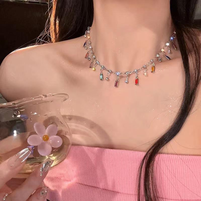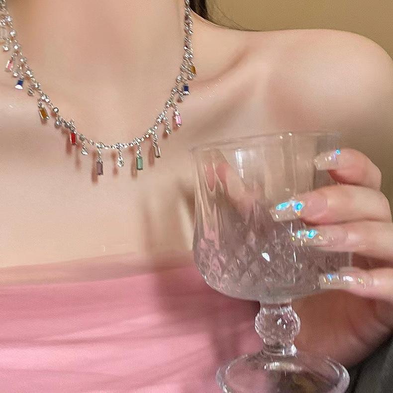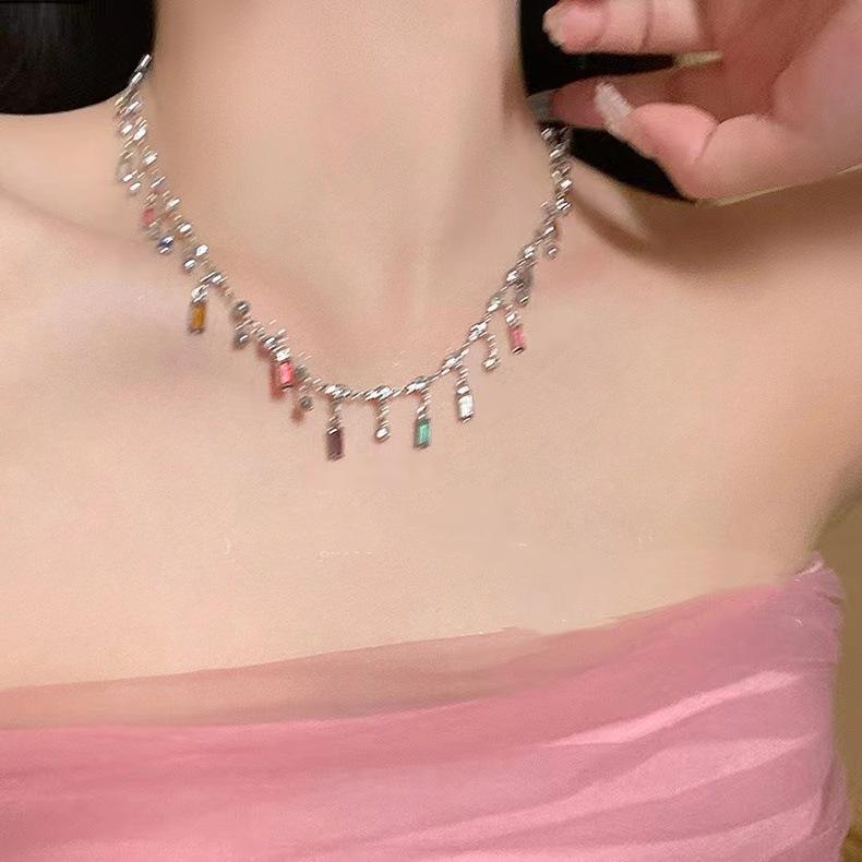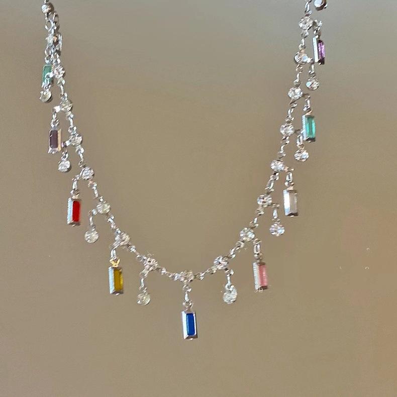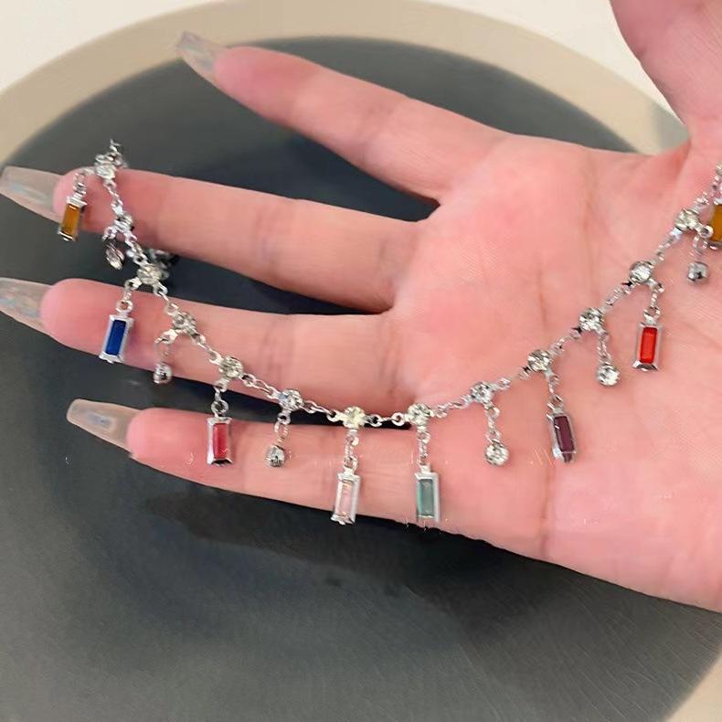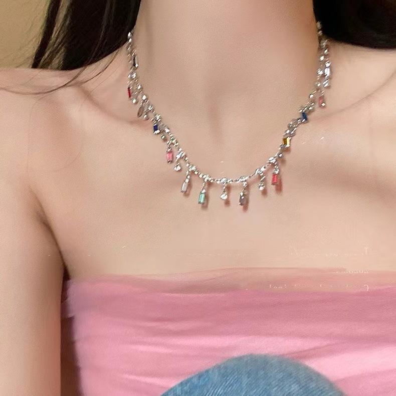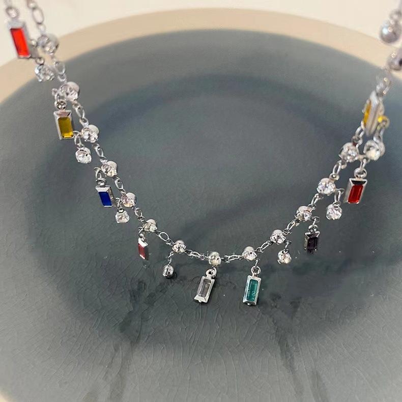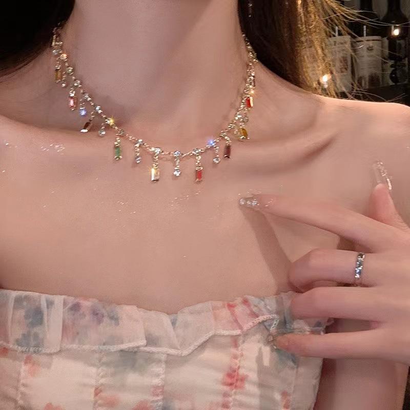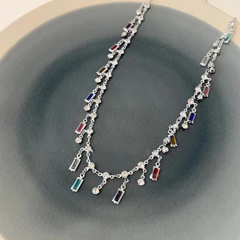 Doce Moda Colorido Zircon Tassel Colar Moda Feminina Elegante Nicho Design Cadeia de Clavícula de Alta Qualidade