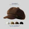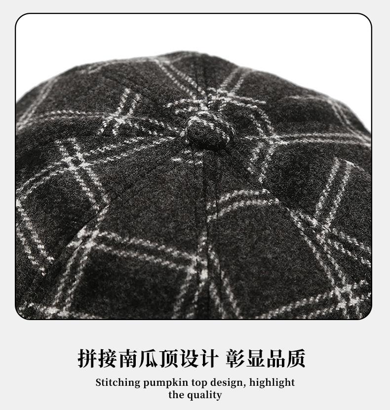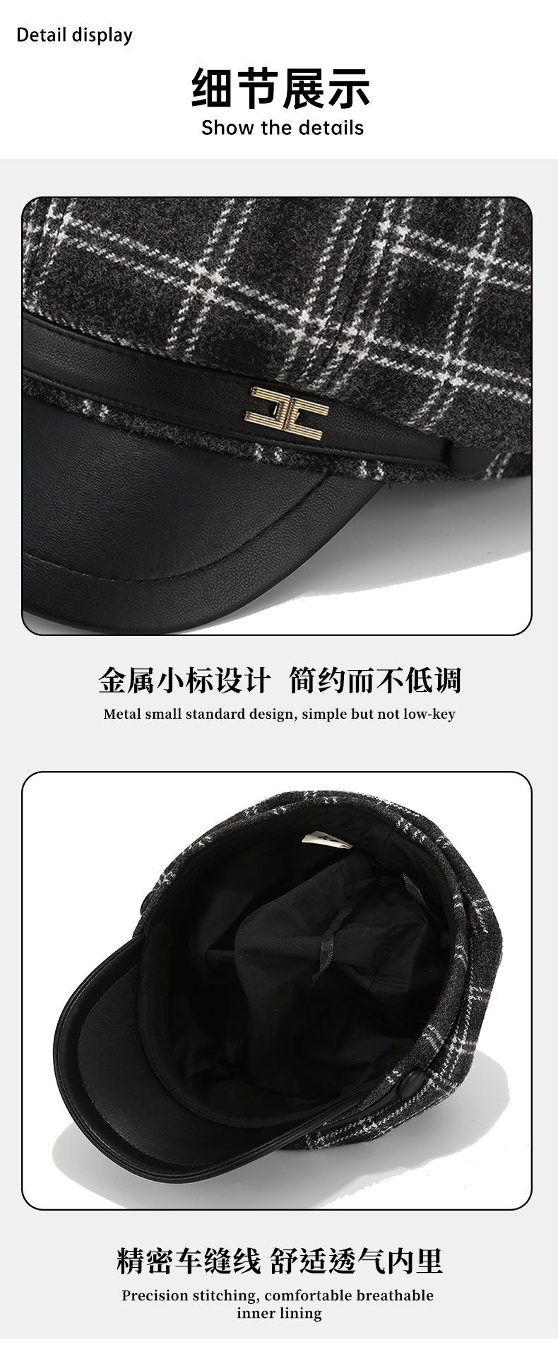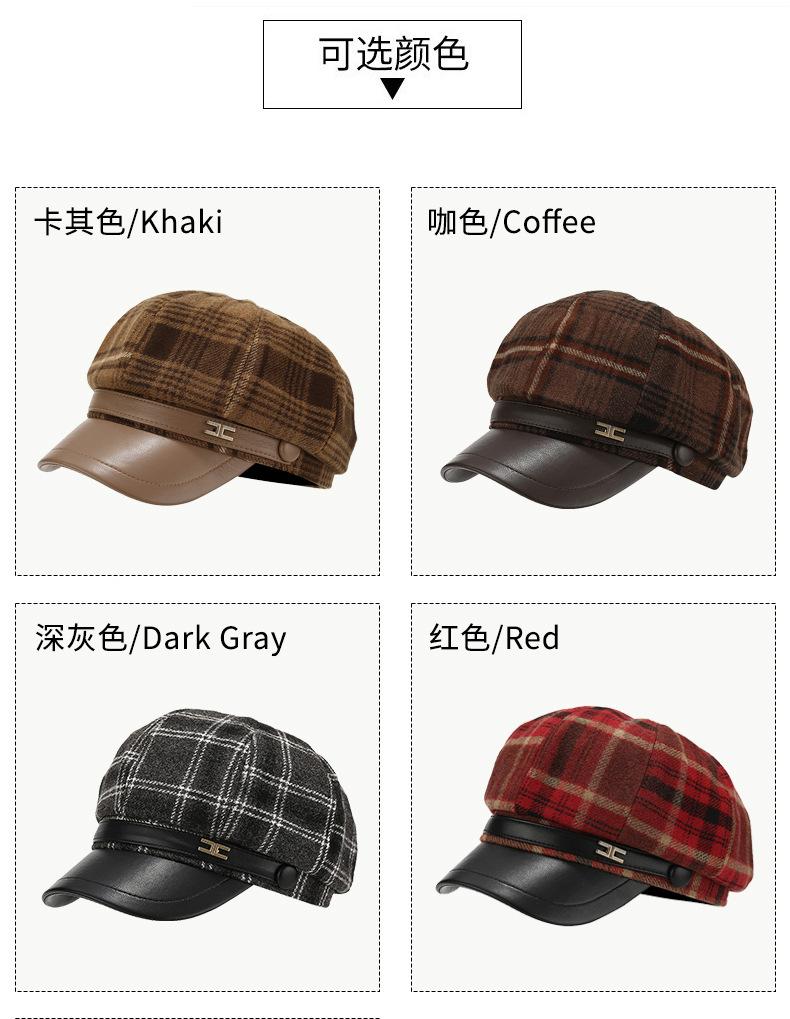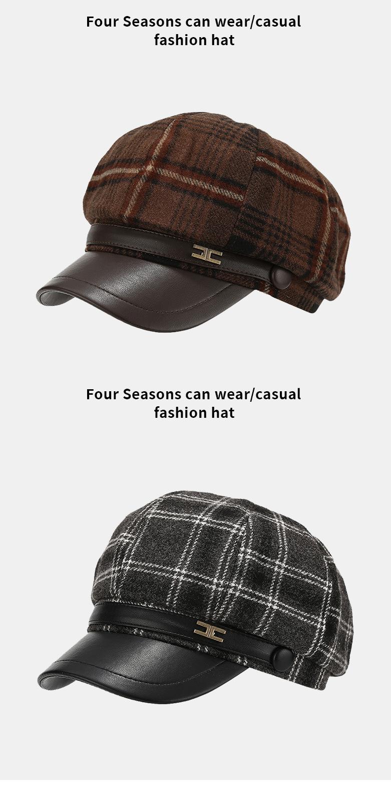 Chapéu Estilo Coreano Feminino Outono e Inverno Nova Chegada Fina Xadrez Couro Brim Boina Retro Face Mostrado Pequeno All-Match Moda Octogonal Chapéu