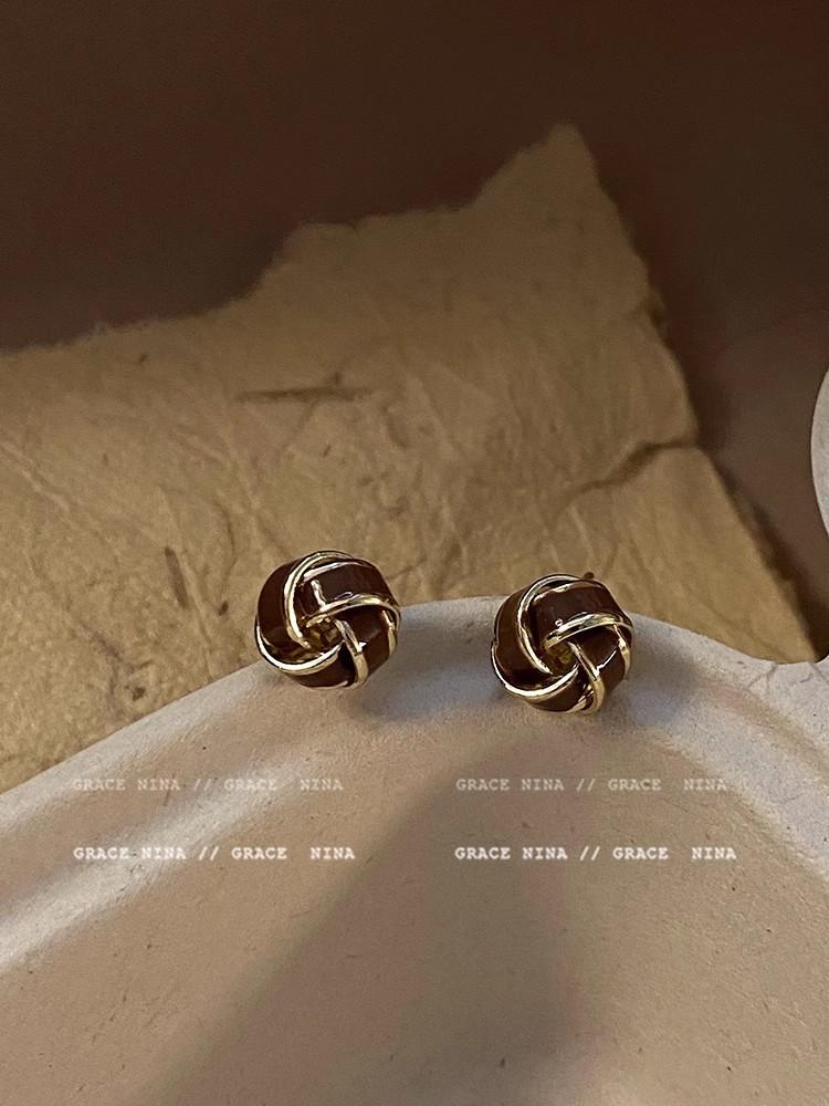 Francês retro gota esmalte torção brincos das mulheres nicho design brincos elegante outono e inverno Maillard brincos de alta qualidade
