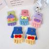Estilo coreano bonito dos desenhos animados menina macia flip luvas femininas inverno quente forro de lã grosso meio dedo aberto estudante equitação maré