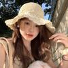 Estilo coreano elegante pérola cadeia ráfia chapéu de palha moda verão feminino chapéu de pescador à beira-mar de férias guarda-sol chapéu de praia