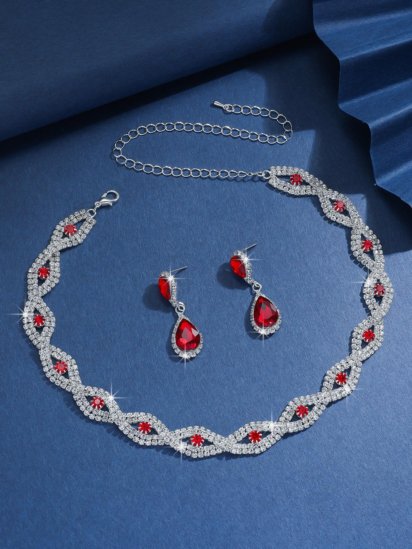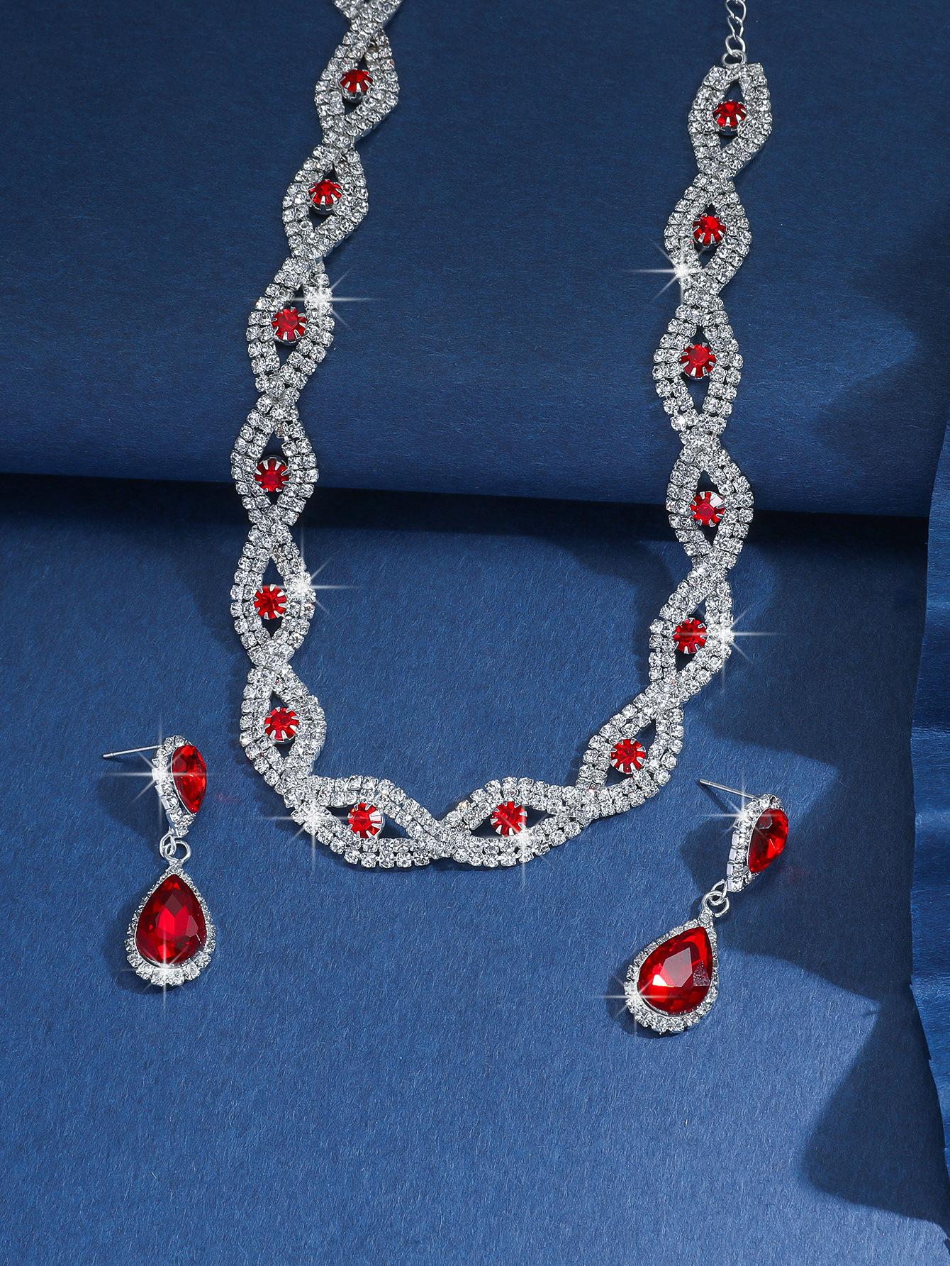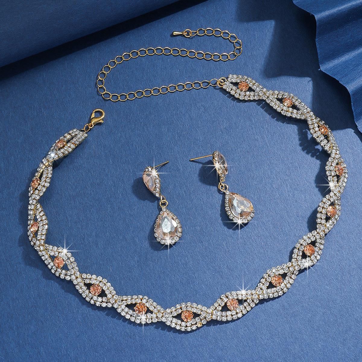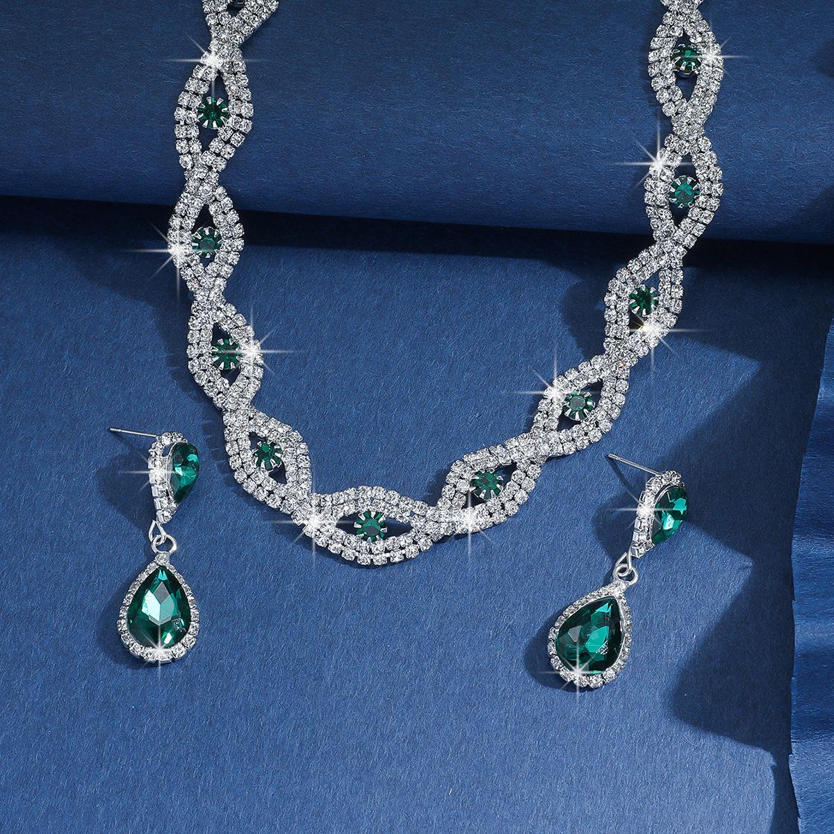 Personalidade europeia e americana tecida colar de strass gota de água terno vermelho verde diamante preto brilhante jóias de noiva vendas diretas da fábrica
