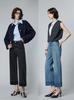 2024 Novo Outono Feminino Calças Cortadas Cintura Alta Retro Jeans Azul Flip-up Preto Denim Calças Cortadas