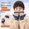 Outono e inverno quente à prova de frio meio-dedo flip cartoon crocodilo bebê menino vison veludo luvas de escrita das crianças da escola primária