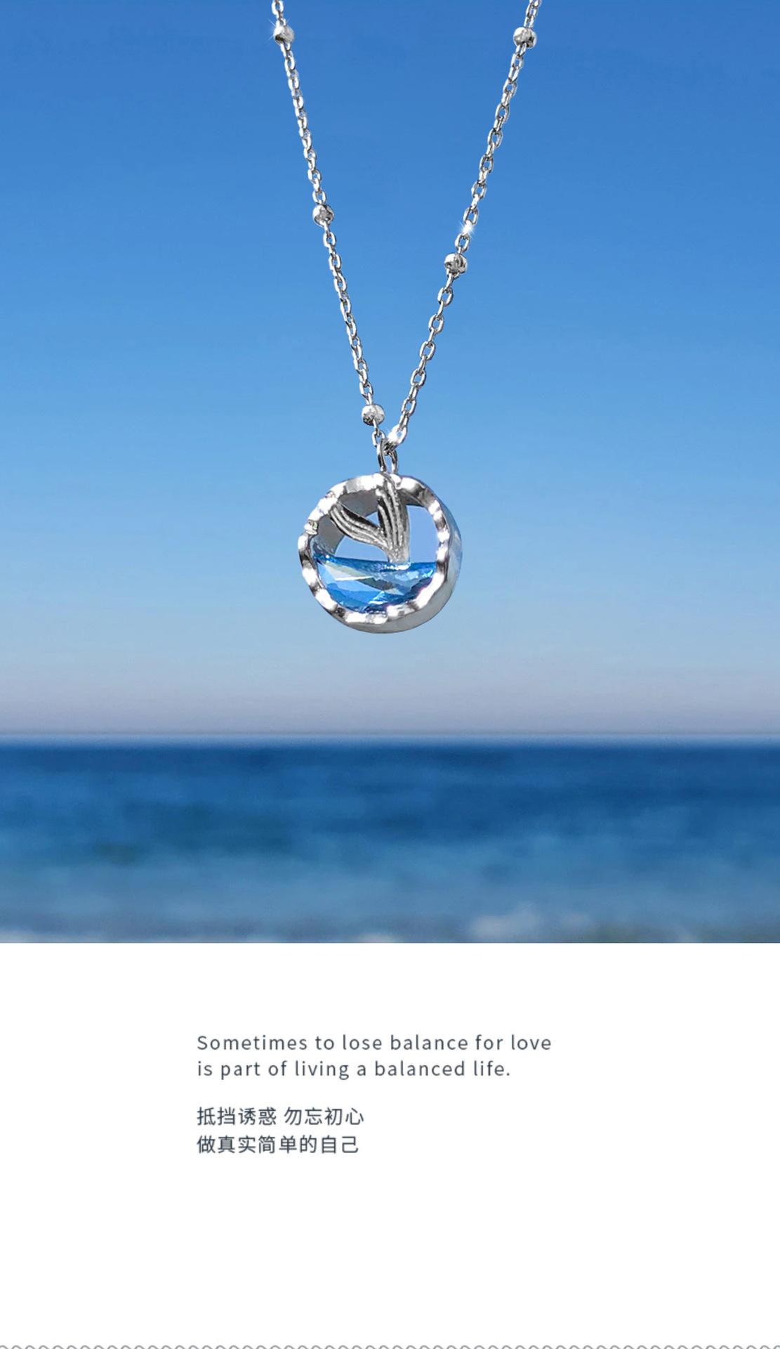 S925 prata esterlina azul rabo de peixe colar design clavícula cadeia nicho feminino alto sentido 2020 nova moda