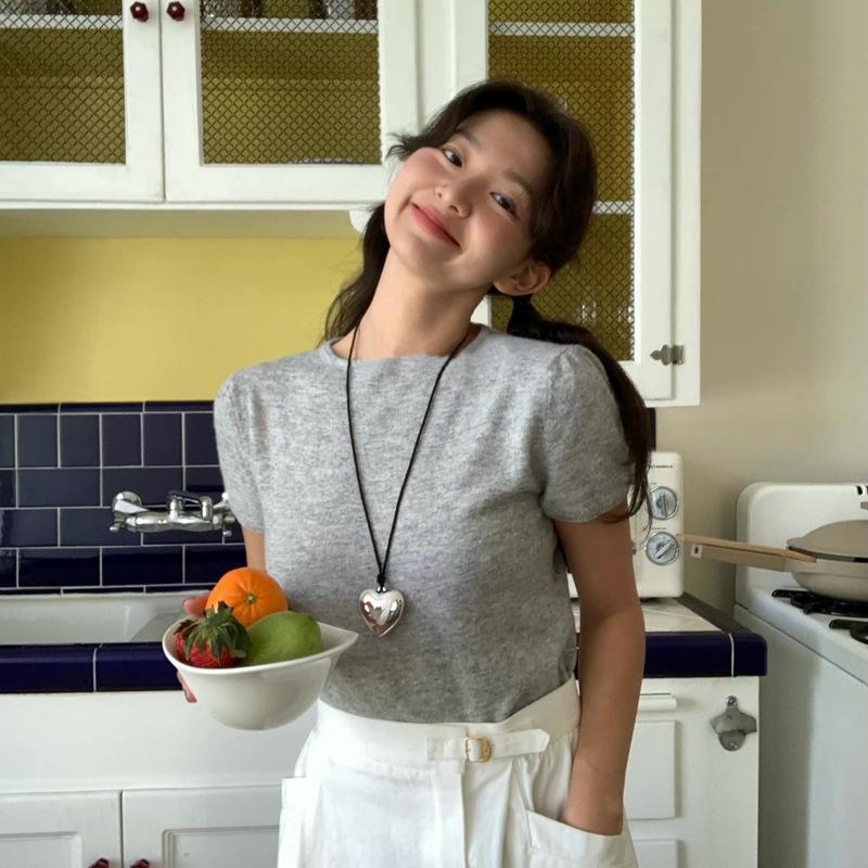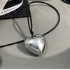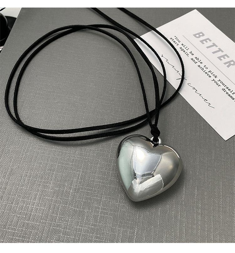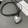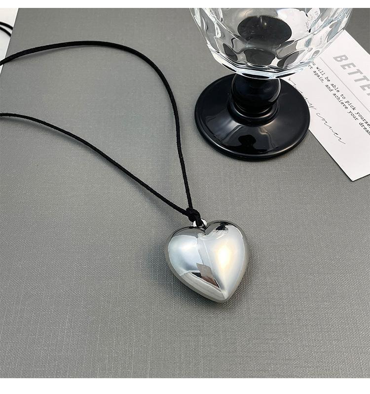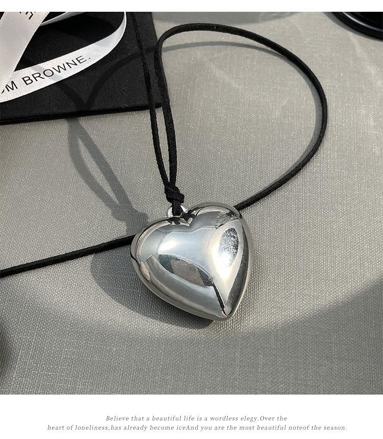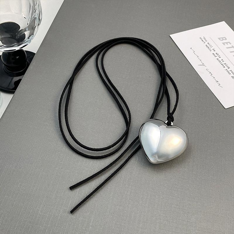 Mesmo estilo de couro preto tridimensional grande amor colar longo ins pingente 2024 nova cadeia de suéter de renda