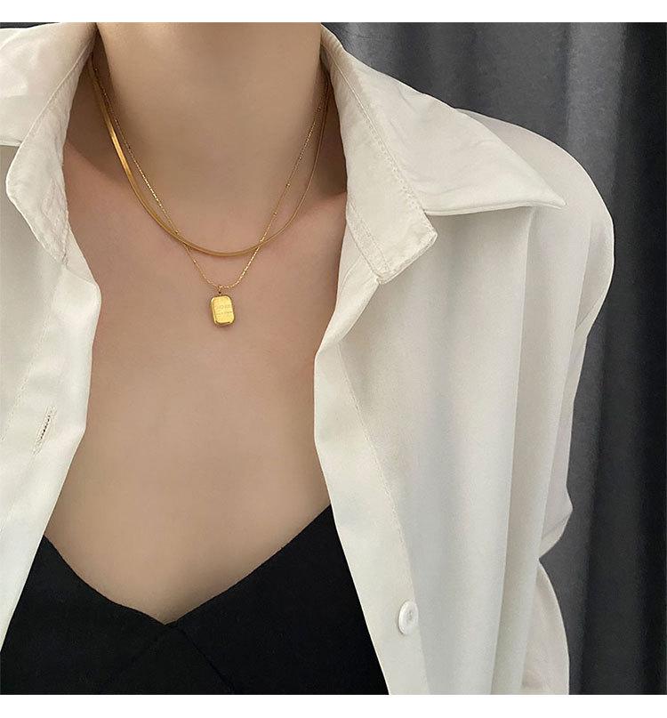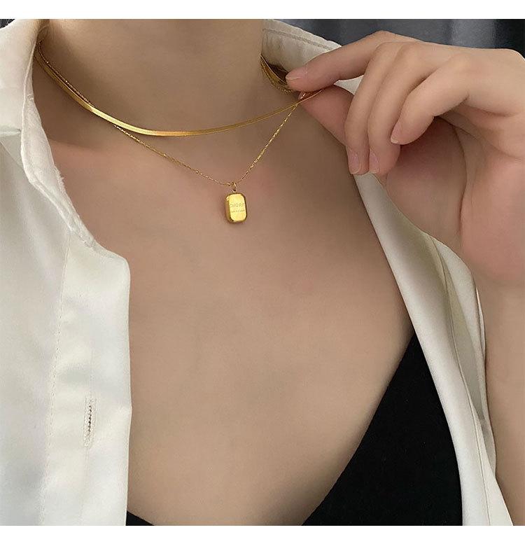 Design Europeu e Americano Moda Nicho Francês Colar de Dupla Camada Moda Moda Titânio Aço Inglês Carta Pingente Clavícula Cadeia Feminina