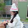 INS Estilo Doce Arco Chapéu de Malha Crianças Outono e Inverno Engrossado Chapéu de Lã Quente Bonito Faixa Vertical Turn-Up Chapéu Frio