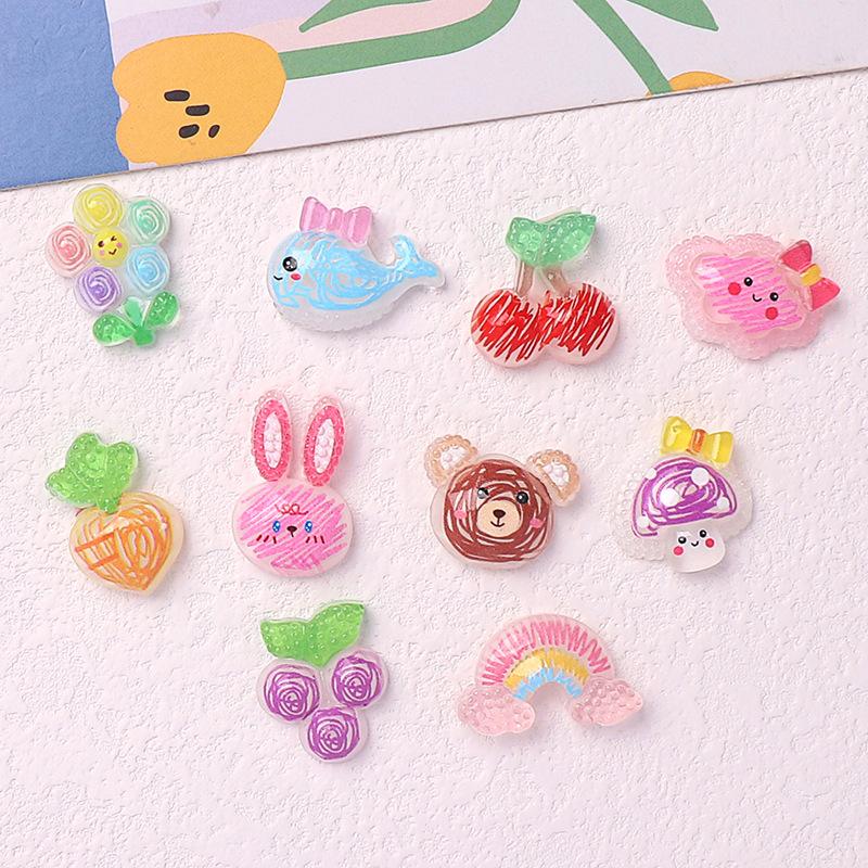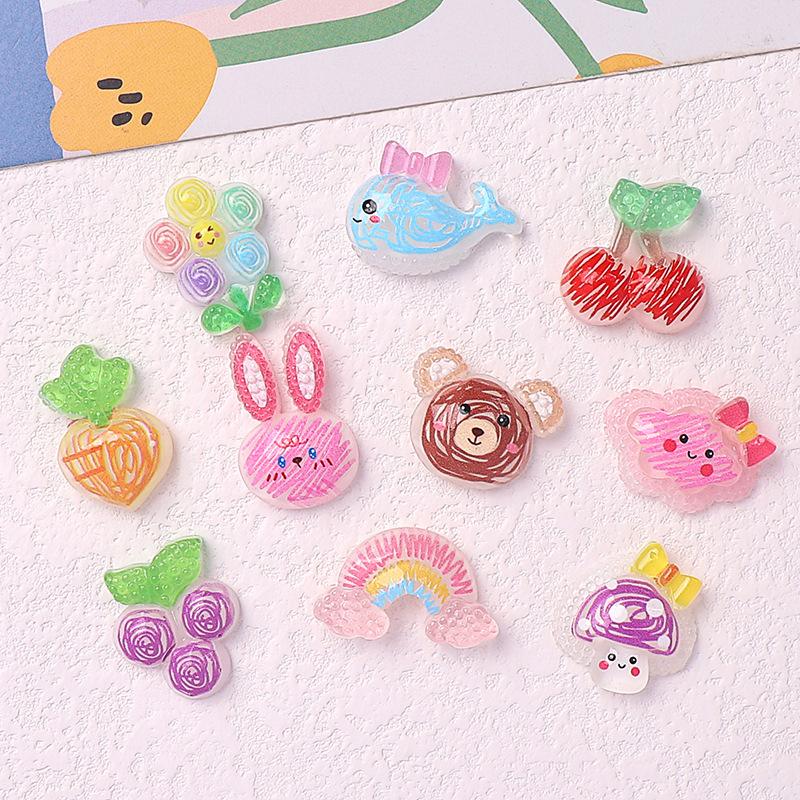 Cartoon Bright Face Pintado à Mão Estilo de Pintura DIY Acessórios de Resina Acessórios Handmade Hairpin Mobile Phone Shell Water Cup Headwear Atacado