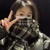Cachecol Inverno Feminino High-end Sense 2024 Novo Estilo Mauhair Preto e Branco Xadrez Estilo Coreano Casal Cachecol Quente Engrossado para Homens