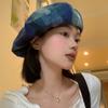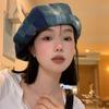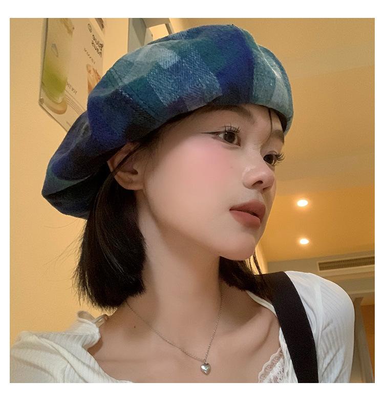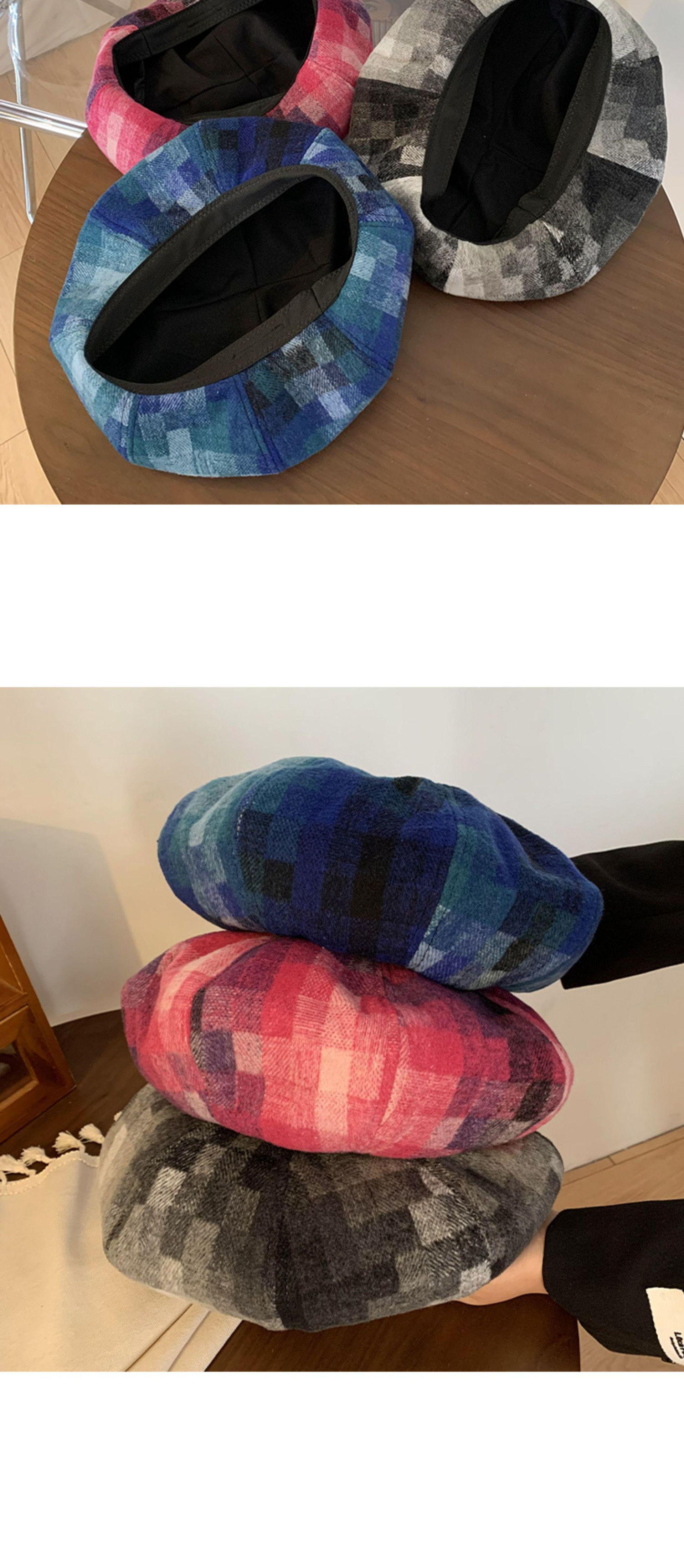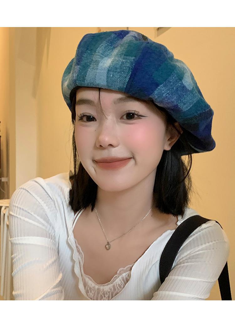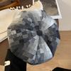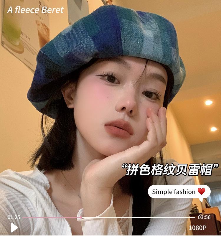 Chapéu de nuvem xadrez japonês vintage, combinando todas as cores, rosto feminino, mostrando pequeno chapéu de pintor Bei Lei, circunferência da cabeça grande, chapéu octogonal moderno
